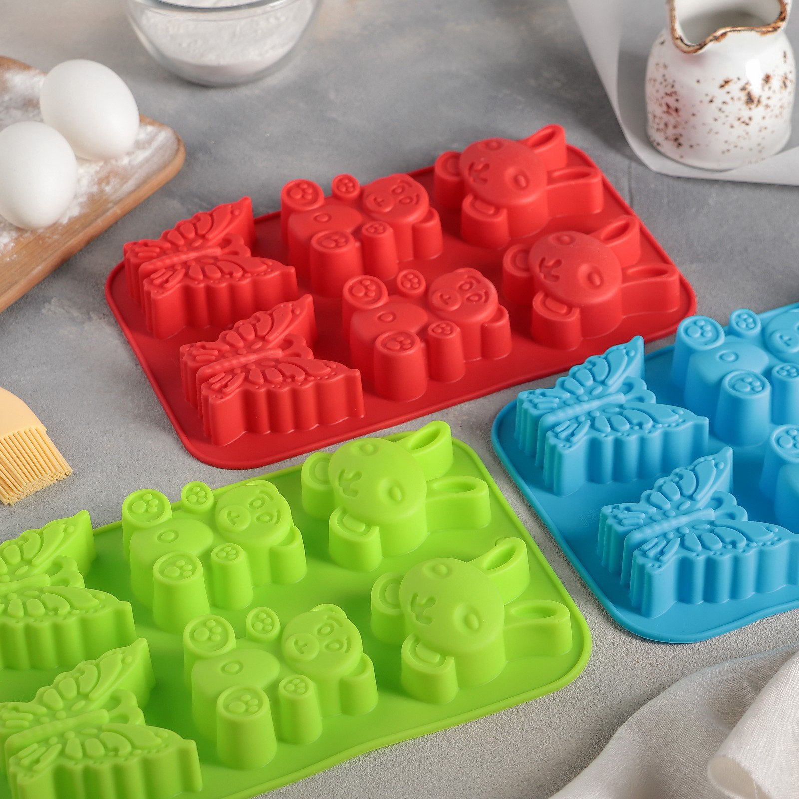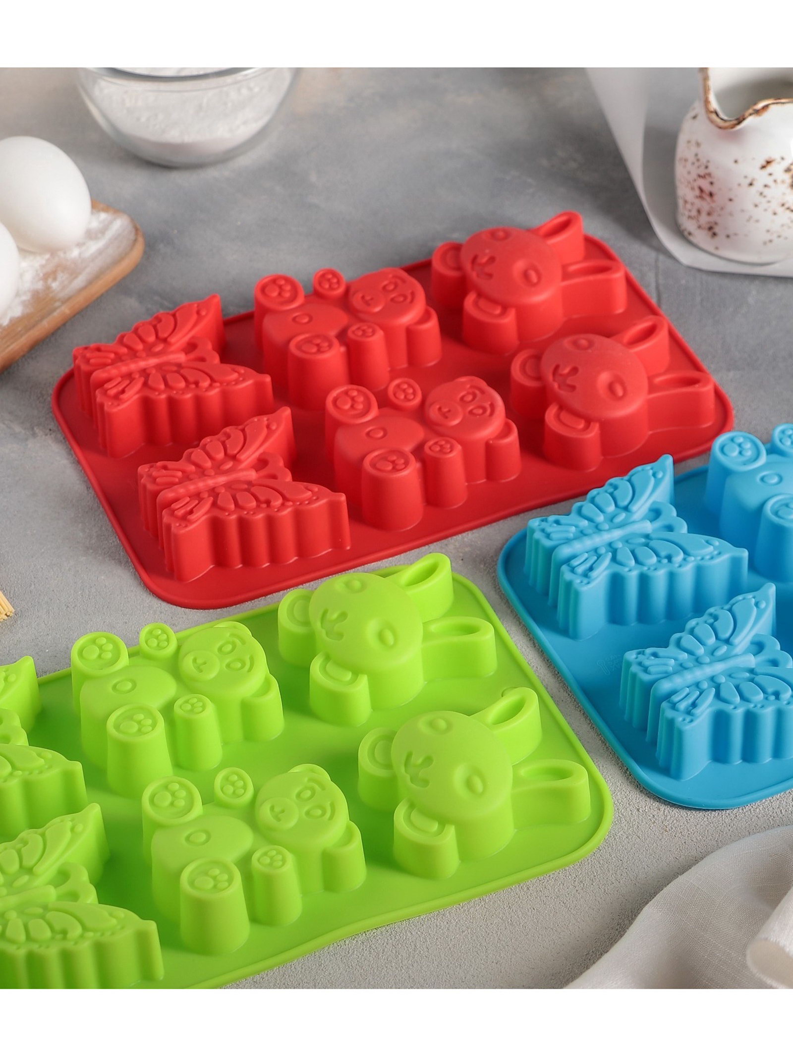 Форма для выпечки "Животные. Зоопарк", силикон, 26x17 см, 6 ячеек, 16.5x28.5x3 см., Доляна, Китай