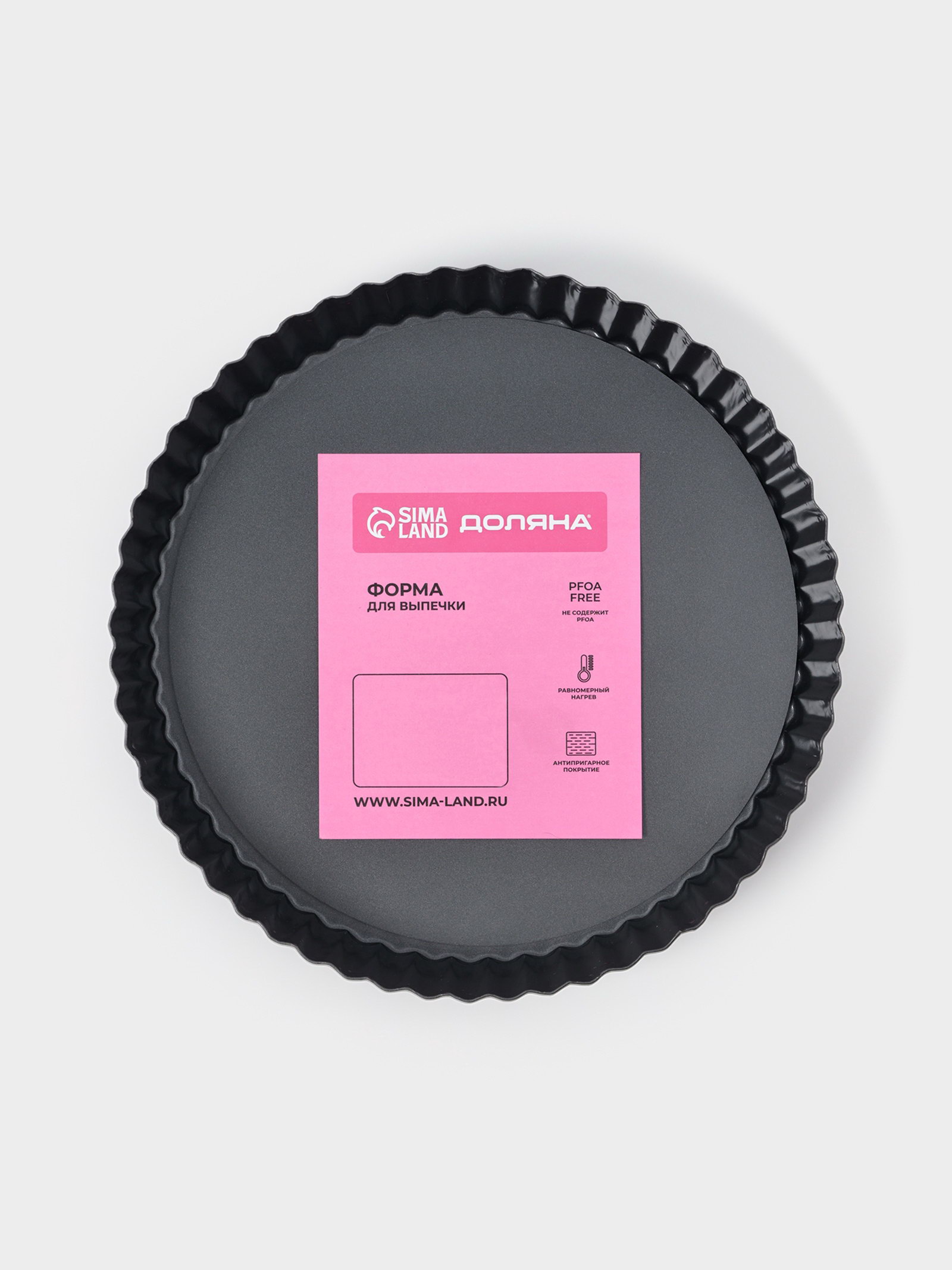 Форма для выпечки "Жаклин. Рифлёный круг", 22x2.5 см, антипригарное покрытие, разъёмная, чёрная, 22х22х2.5 см., Доляна, Китай