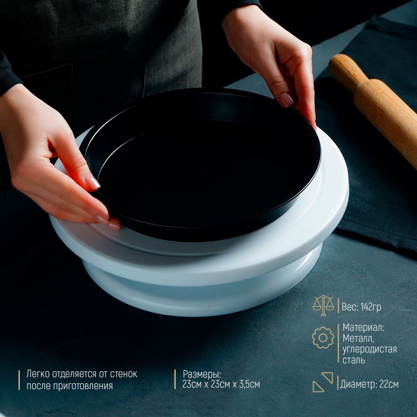 Форма для выпечки "Круг. Жаклин", 22x3 см, антипригарное покрытие, цвет чёрный, 22х22х3.5 см., Доляна, Китай