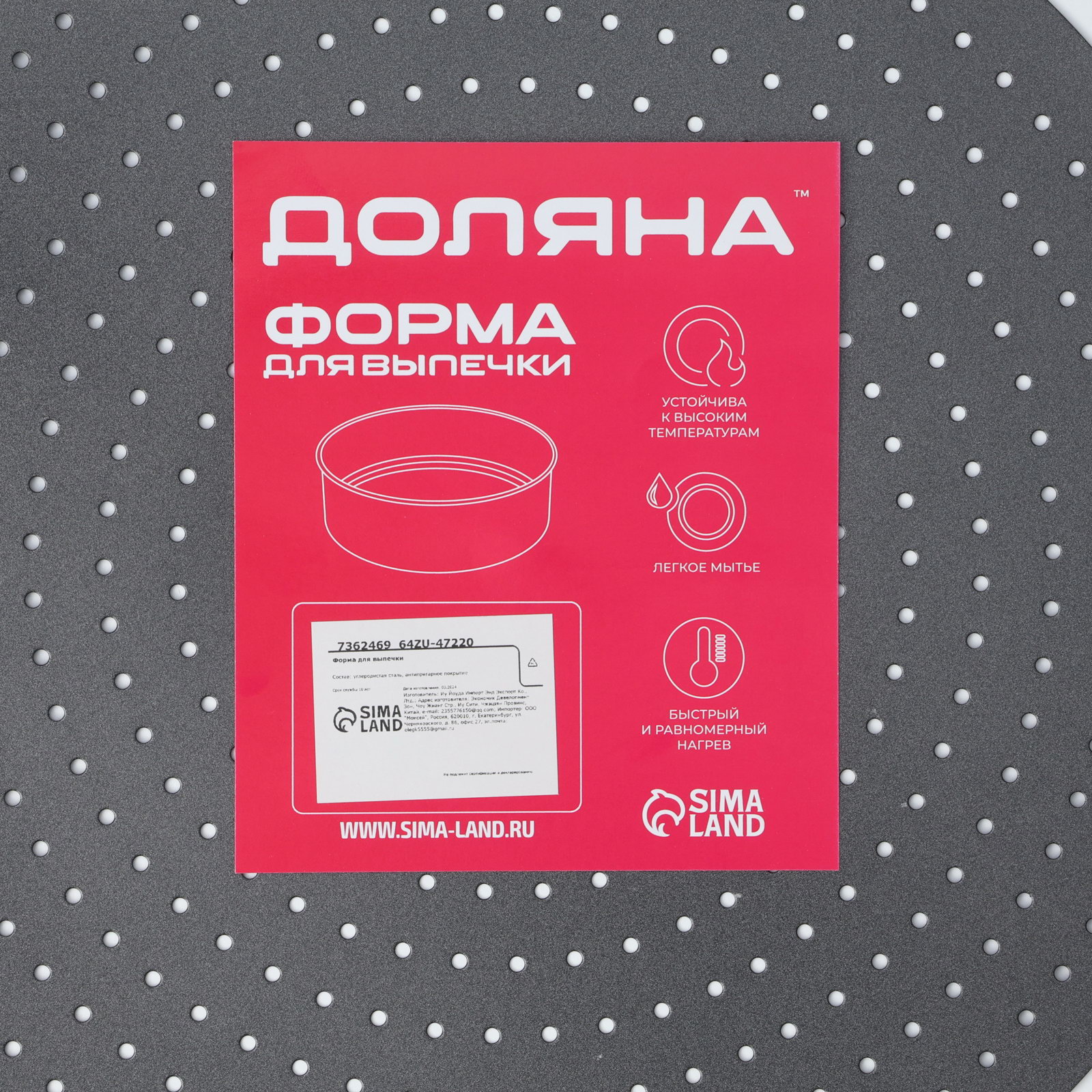 Форма для выпечки Galaxy, 28x3 см, разъёмная, перфорированная, антипригарное покрытие, 28х28х3 см., Доляна, Китай
