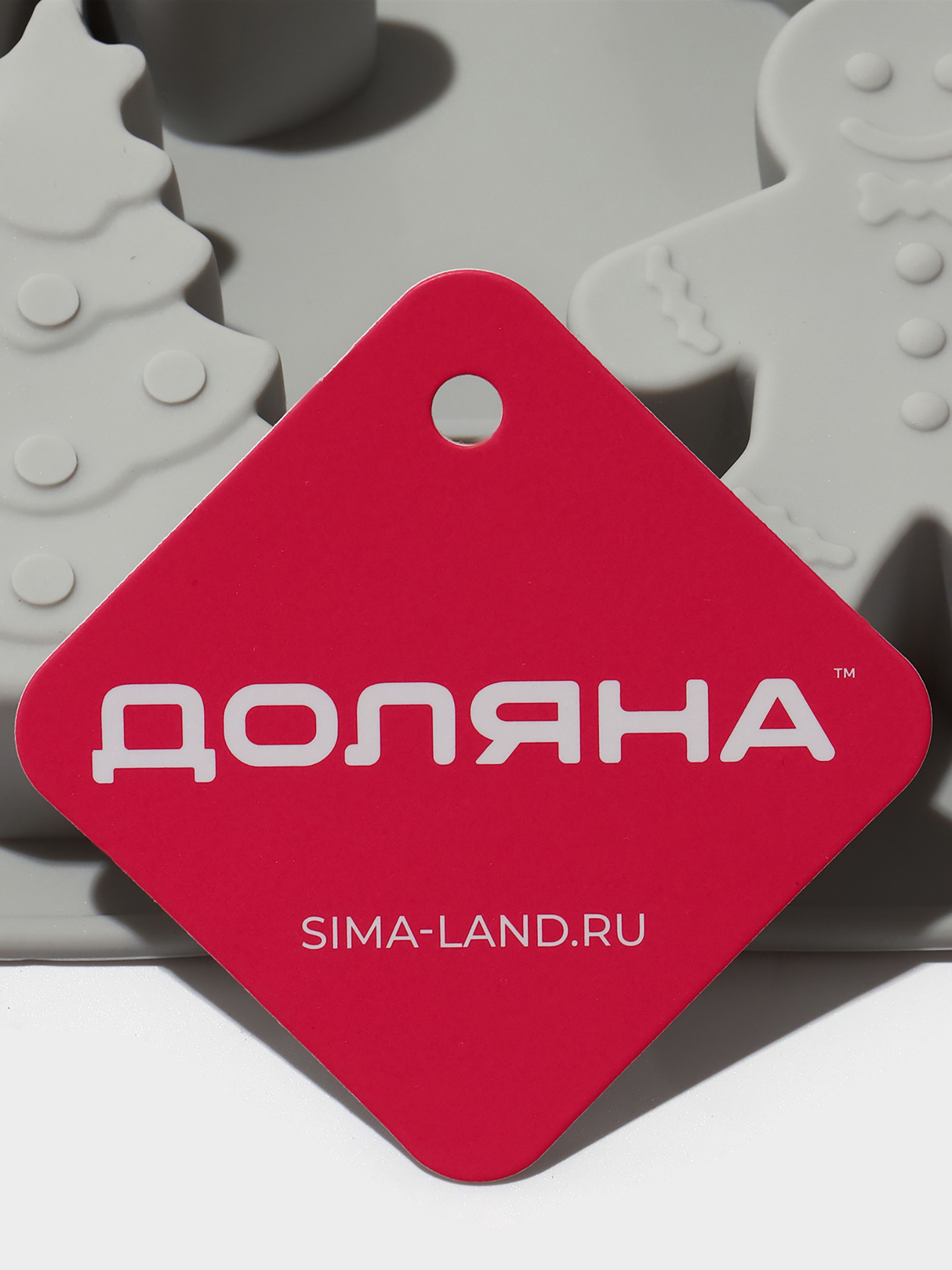 Форма для выпечки новогодняя "Новогодние пряники", силикон, 6 ячеек, 25.5x17.5x2.5 см, серая, 17.5x25.5x2.5 см., Доляна, Китай