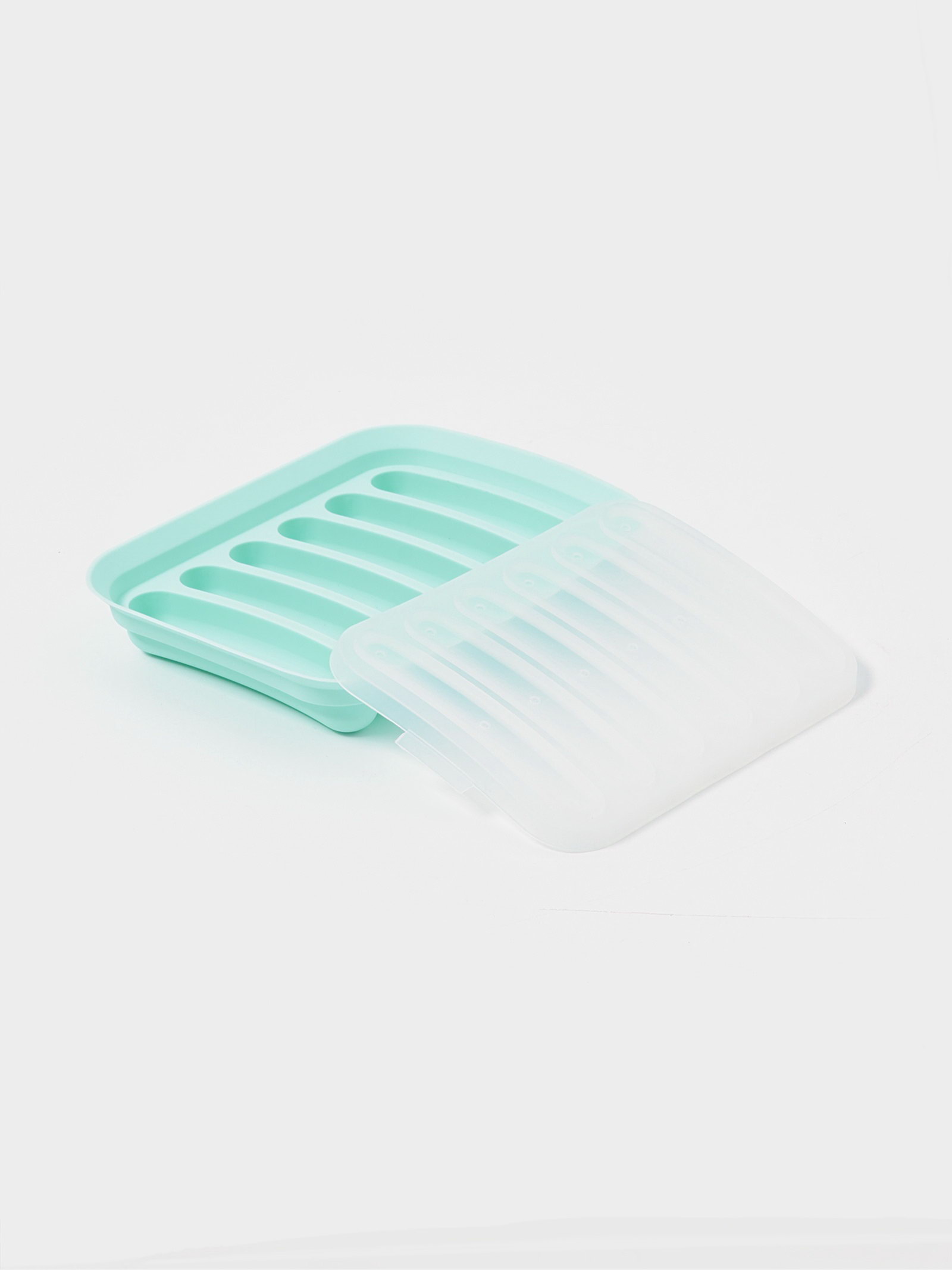 Форма для выпечки и приготовления сосисок 6 ячеек, с крышкой, 17.5x13.5.2.8 см, силикон, бирюзовый, 13.5x17.5x2.8 см., Доляна, Китай