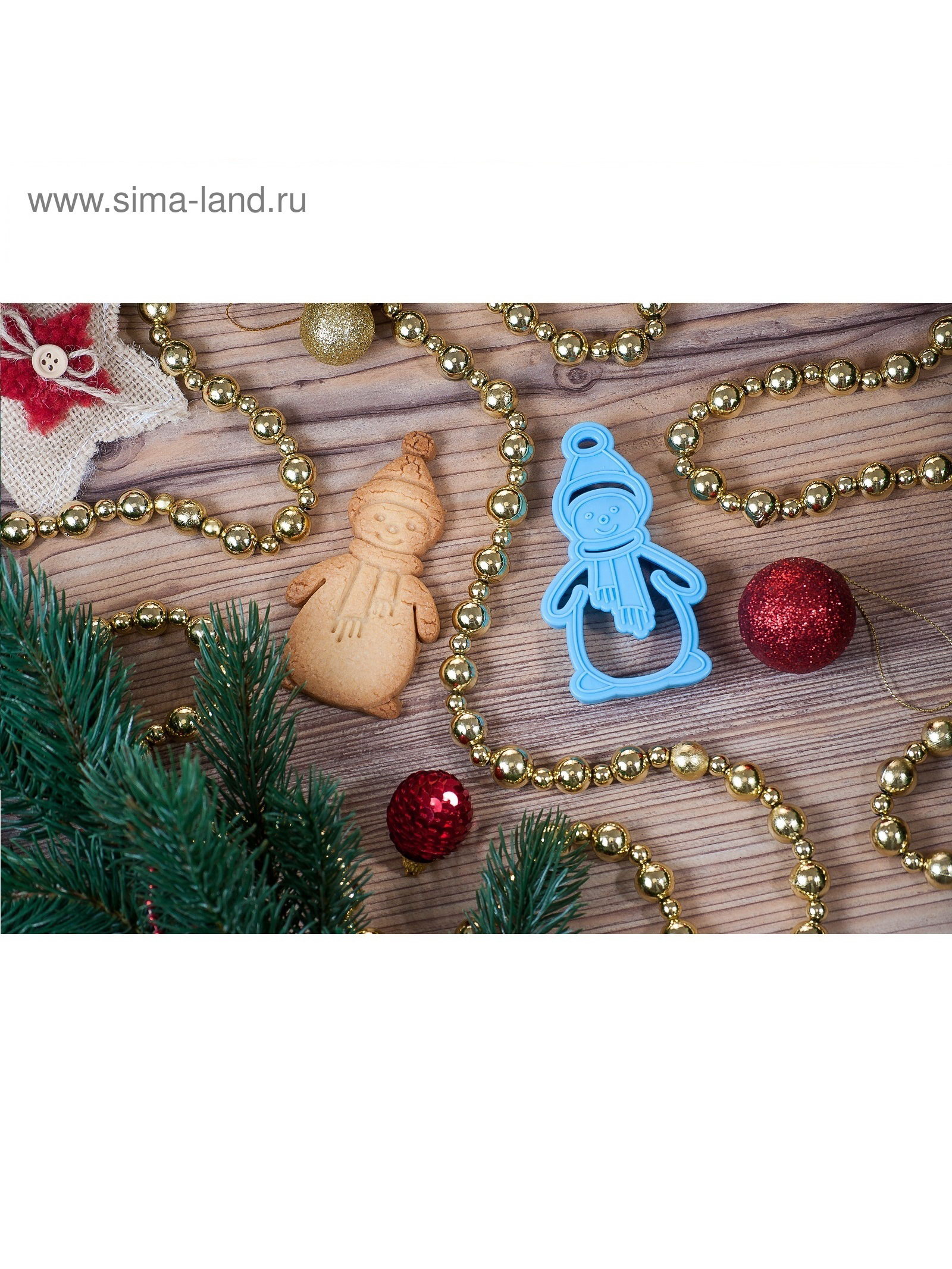 Форма для печенья новогодняя "Снеговик", вырубка, штамп, 9.9x5.7x1.5 см, пластик, голубая, Леденцовая фабрика, Россия