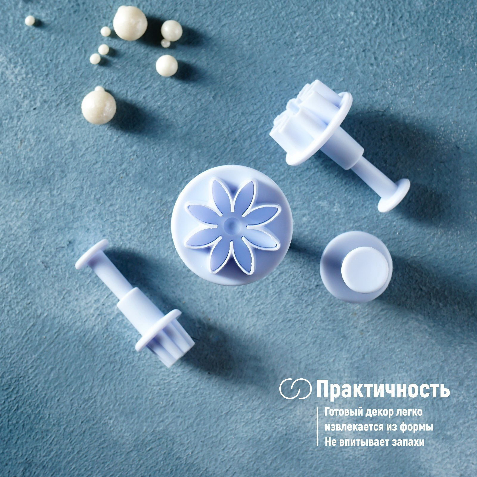 Набор плунжеров кондитерских "Цветы. Гербера", 4 шт., d=2/2.7/3.8/4.1 см, 6x13x4.5 см., Доляна, Китай