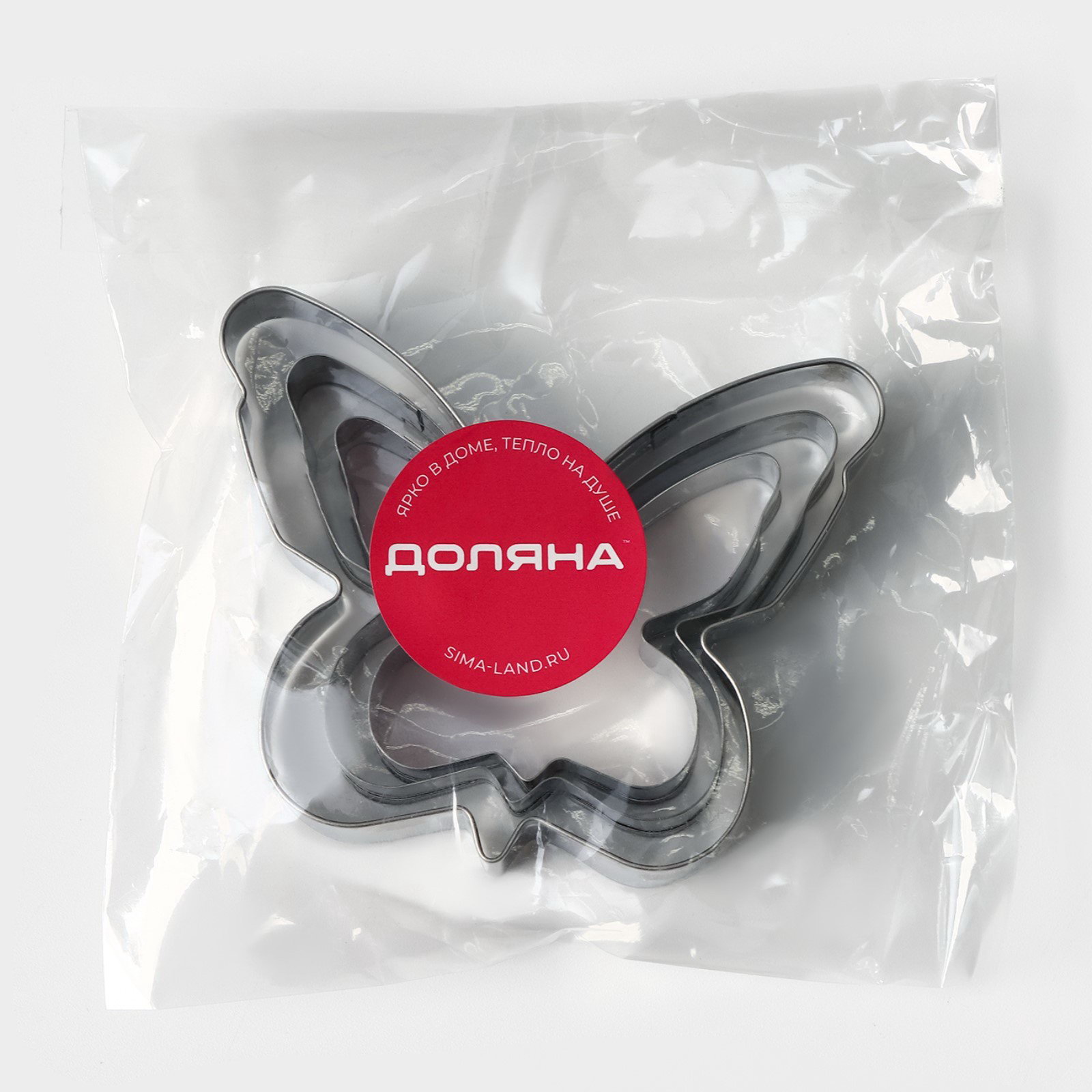 Формы для печенья "Бабочка", набор 3 шт., металл, серебристые, 6x7.5x1.5 см., Доляна, Китай