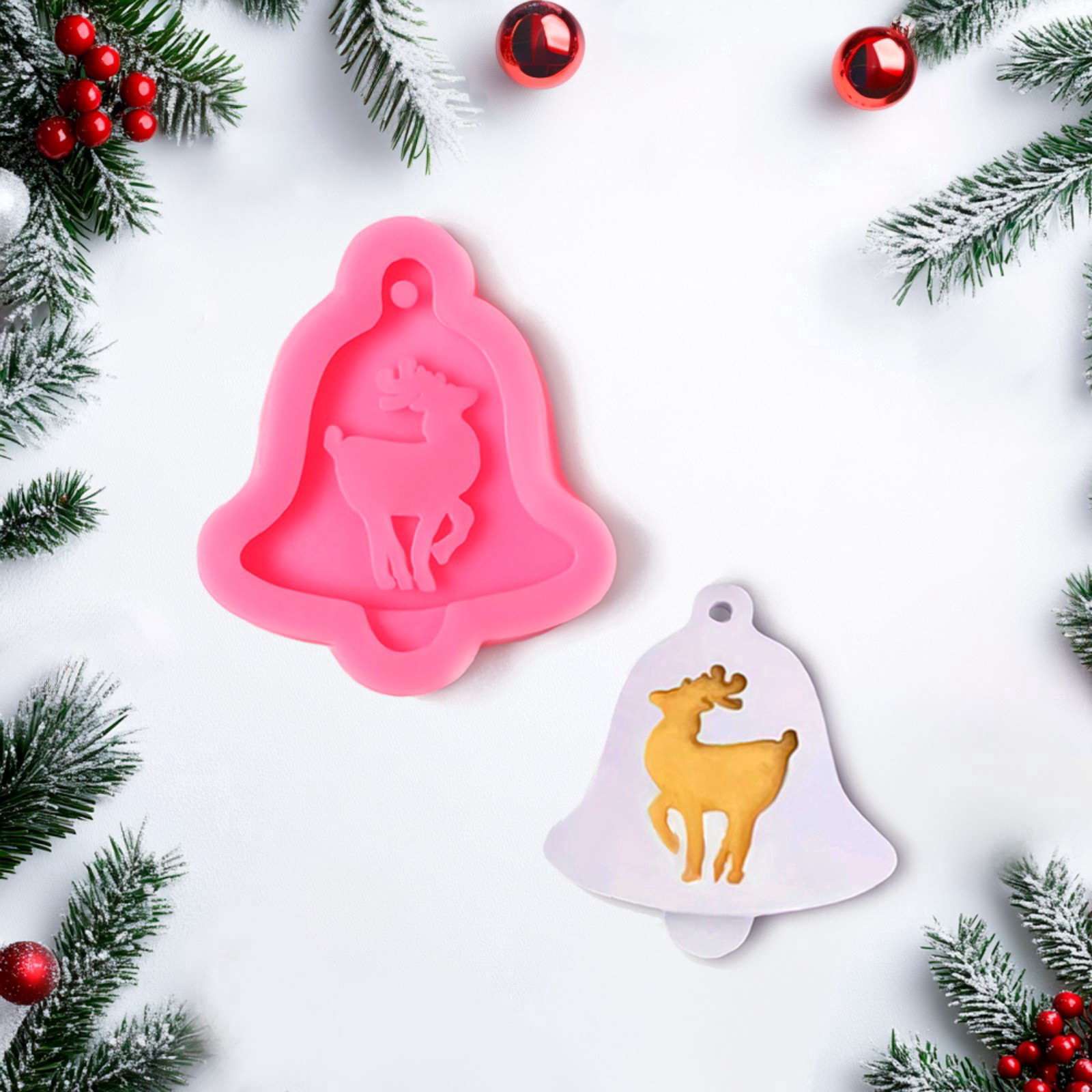 Молд для заливки новогодний "Колокольчик оленя", силикон, 10x9x1.5 см, розовый, 9x10x1.5 см., Китай