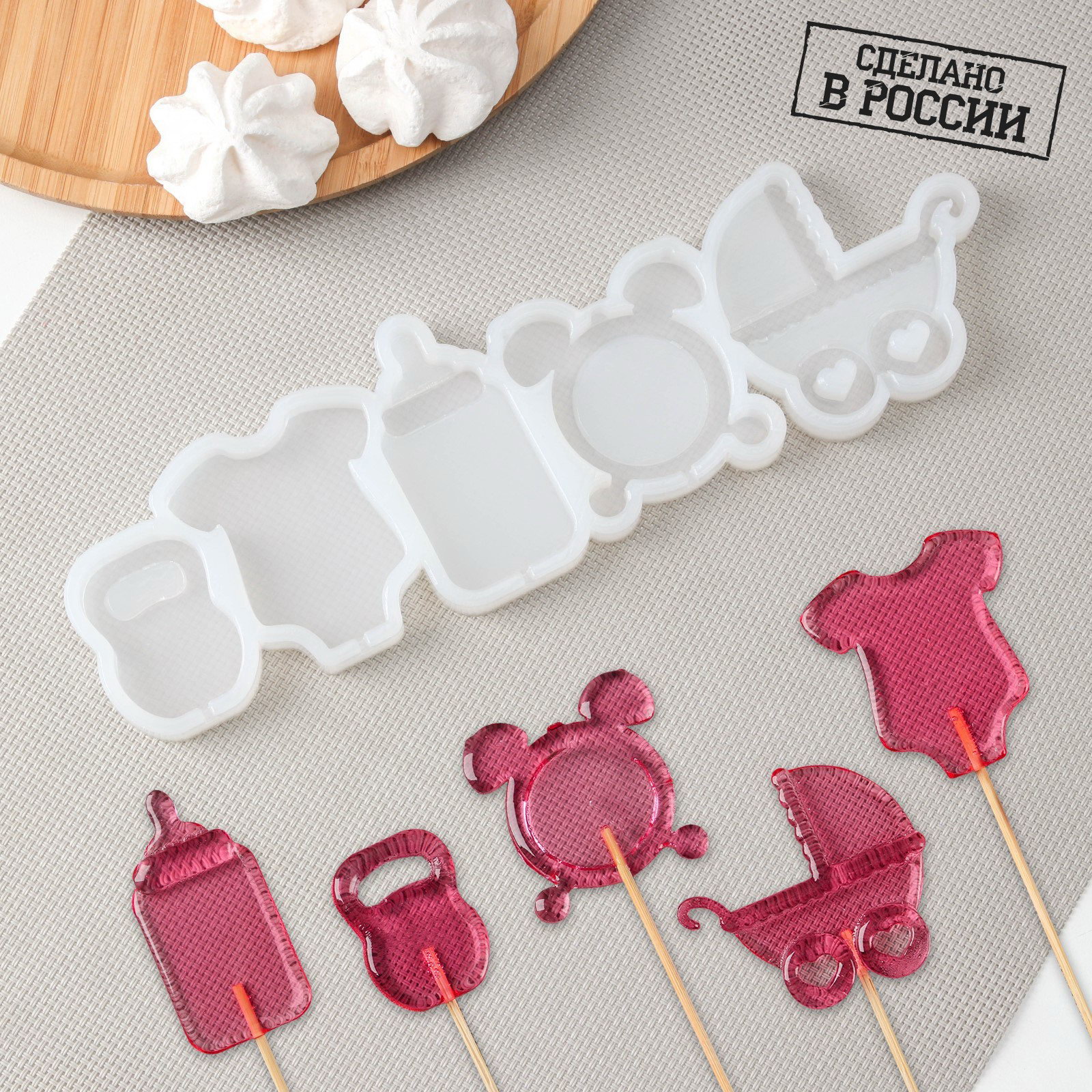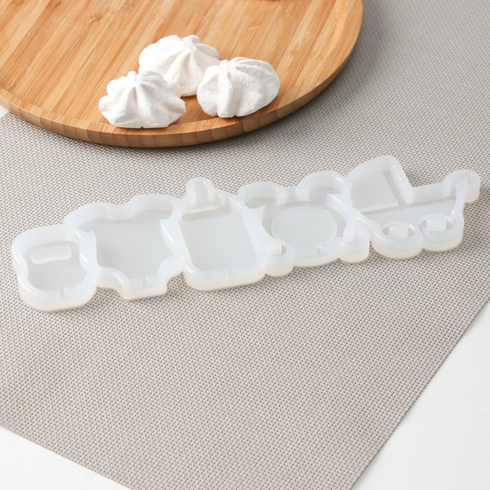 Молд для леденцов и шоколада "Детский набор", силикон, коляска 7x6.7 см, боди 6x5.5 см, гиря 4.5x3.2 см, бутыль 7x3.5 см, прозрачный, Россия