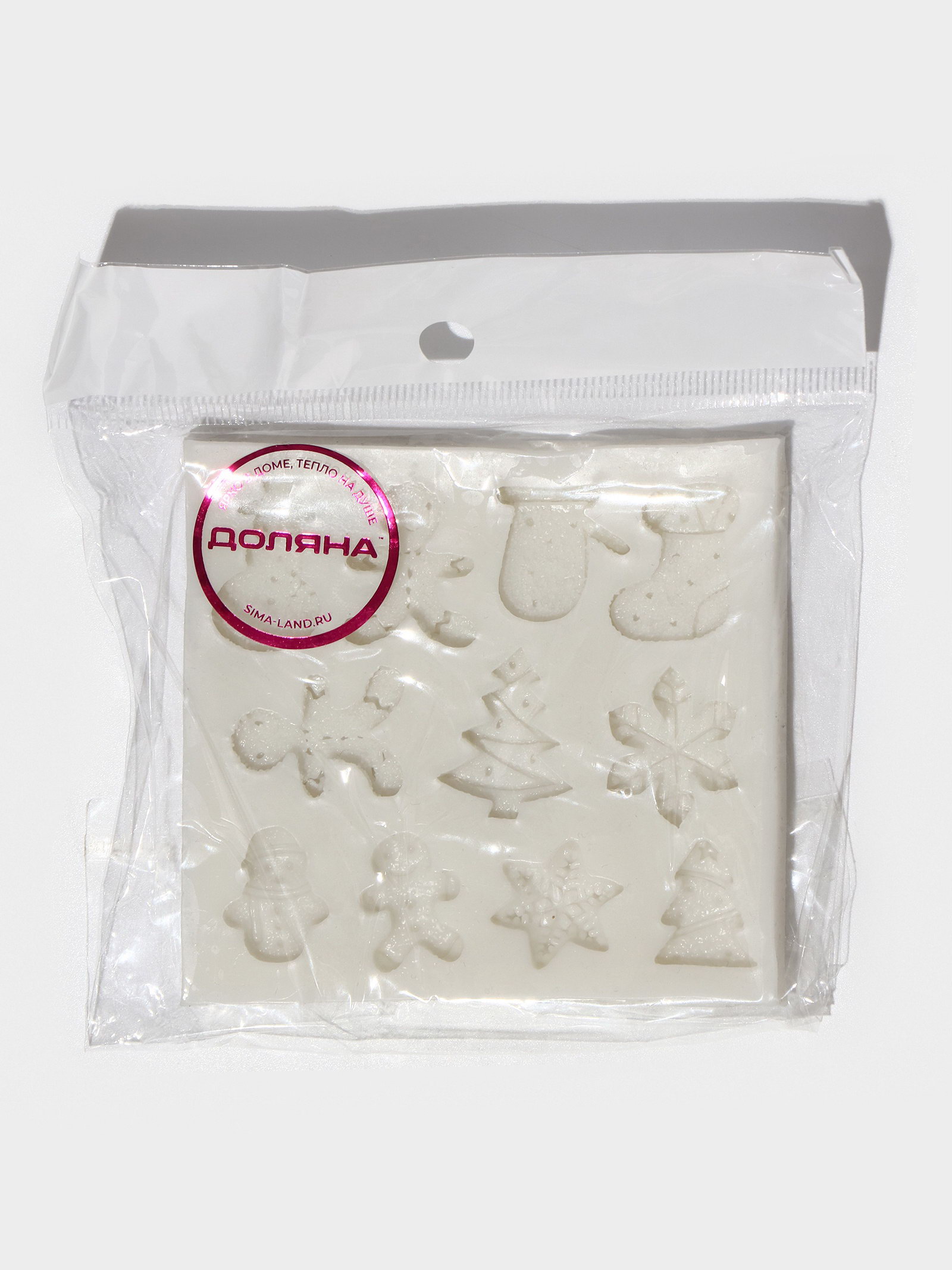 Молд для заливки "Новый год", 8.7x8.3x0.7 см, силикон, серый, 8.3x8.7x0.7 см., Доляна, Китай