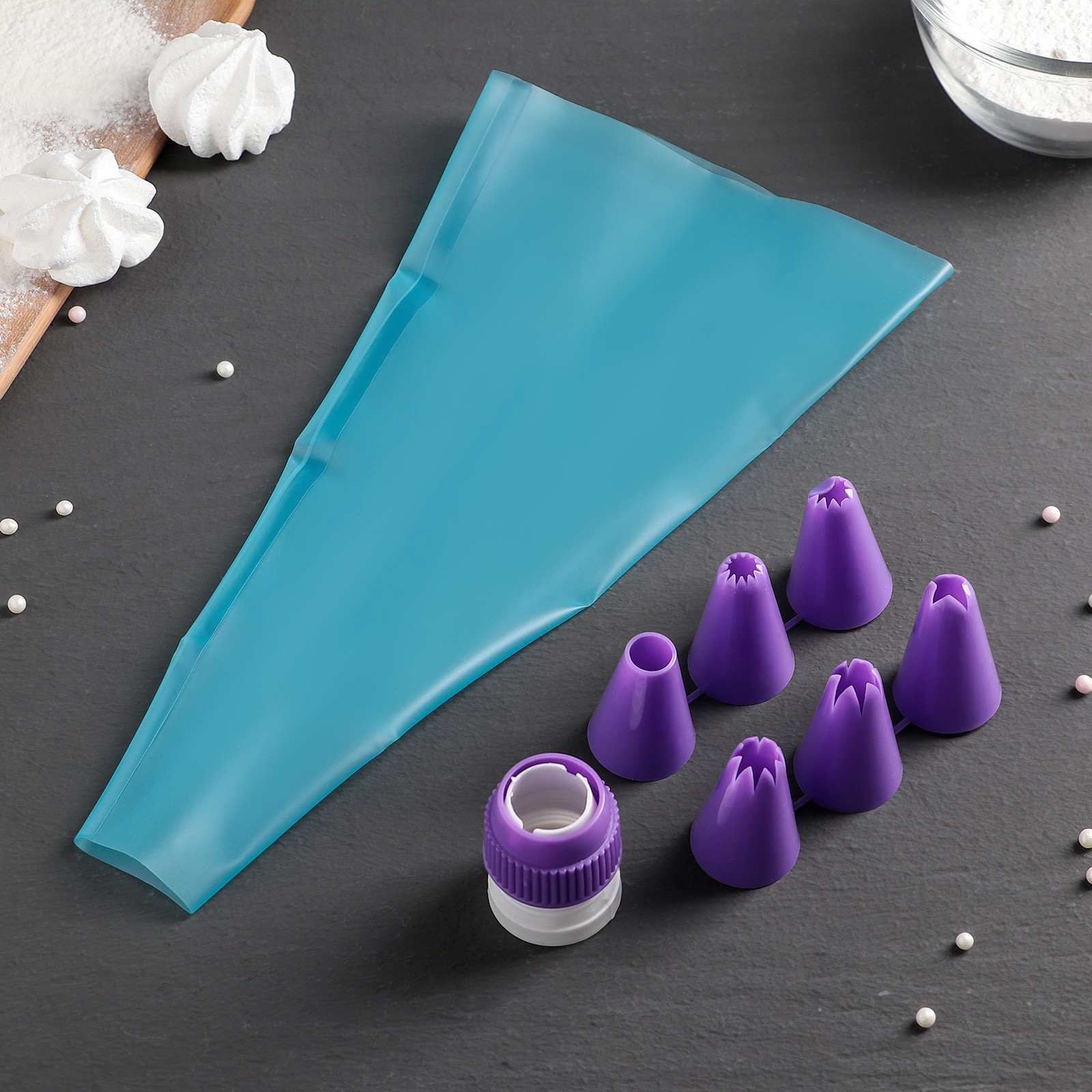 Набор кондитерский "Бирюза", 6 насадок, 19x24x3.5 см., Доляна, Китай