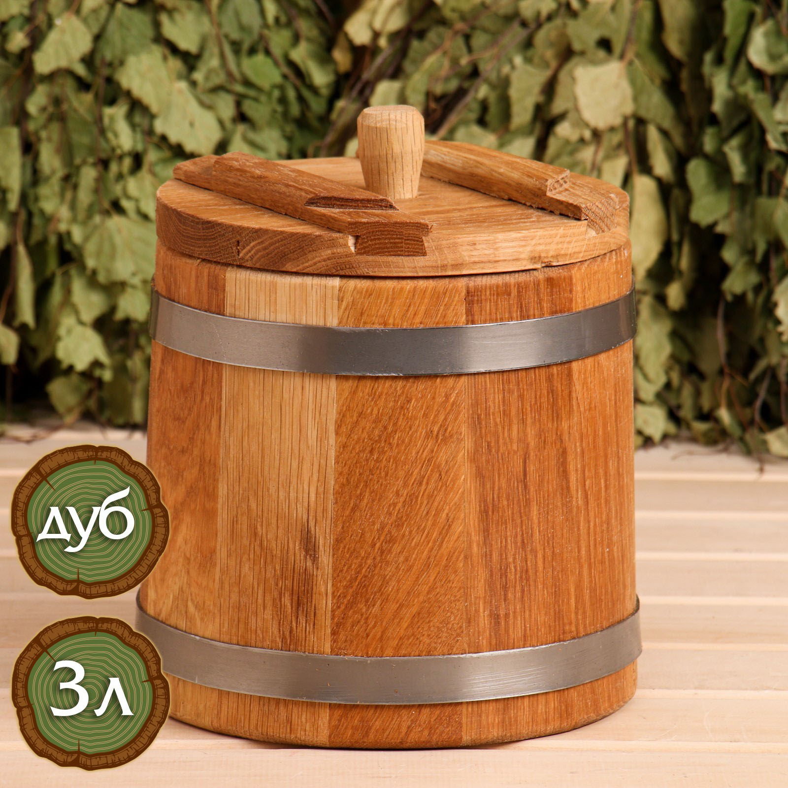 Бочка для засолки, 3 л, дубовая, с гнётом, 3000 мл., Добропаровъ, Россия