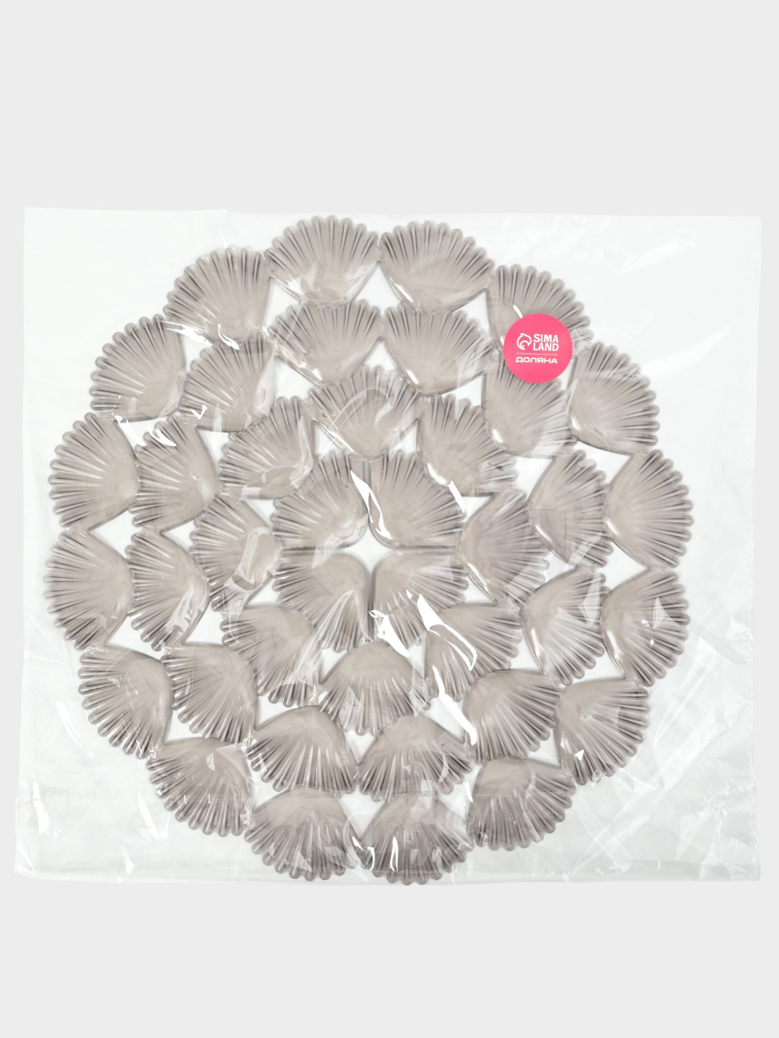 Размер упаковки: 29 x 0.2 x 29 см. tnved: 3924900000 Форма: Круг Цвет: Серый Кухонная раковина ежедневно выдерживает удары тяжёлой посуды, трение от губок и падение ножей. Всё это оставляет на эмали сколы, царапины и потёртости. Этот круглый коврик диаметром 29 см кладётся на дно раковины и работает как амортизирующий барьер. Прозрачный серо-коричневый оттенок делает его почти незаметным, а рисунок "Ракушки" добавляет интерьеру лёгкости, не перегружая пространство. Защита дна раковины