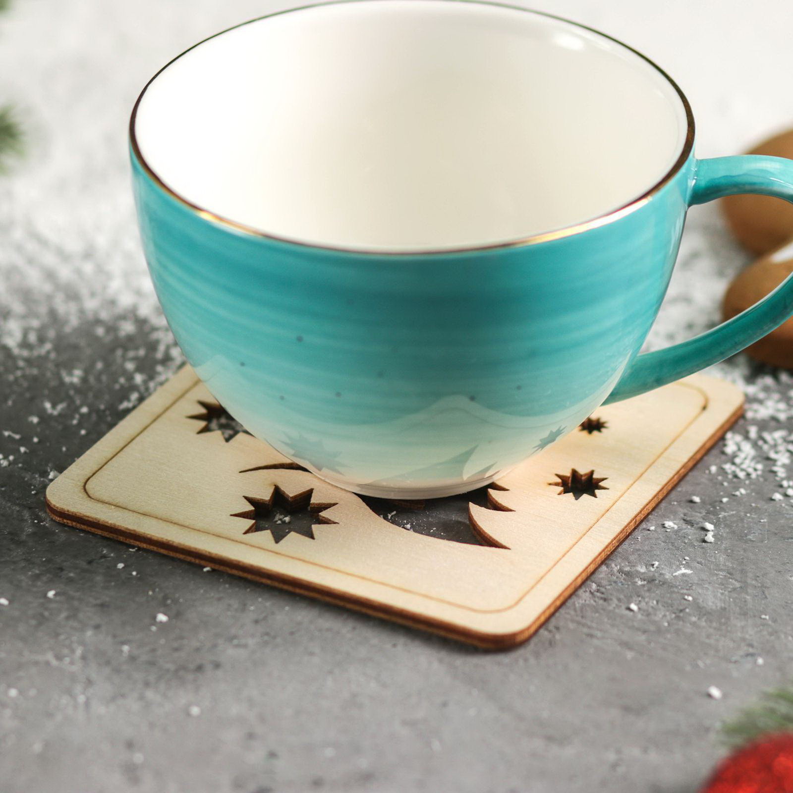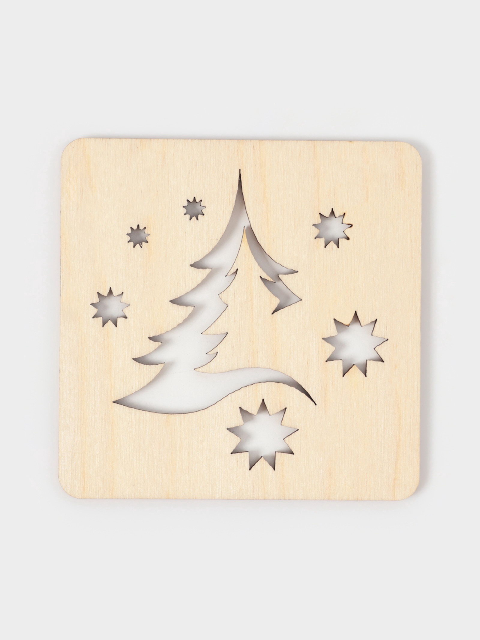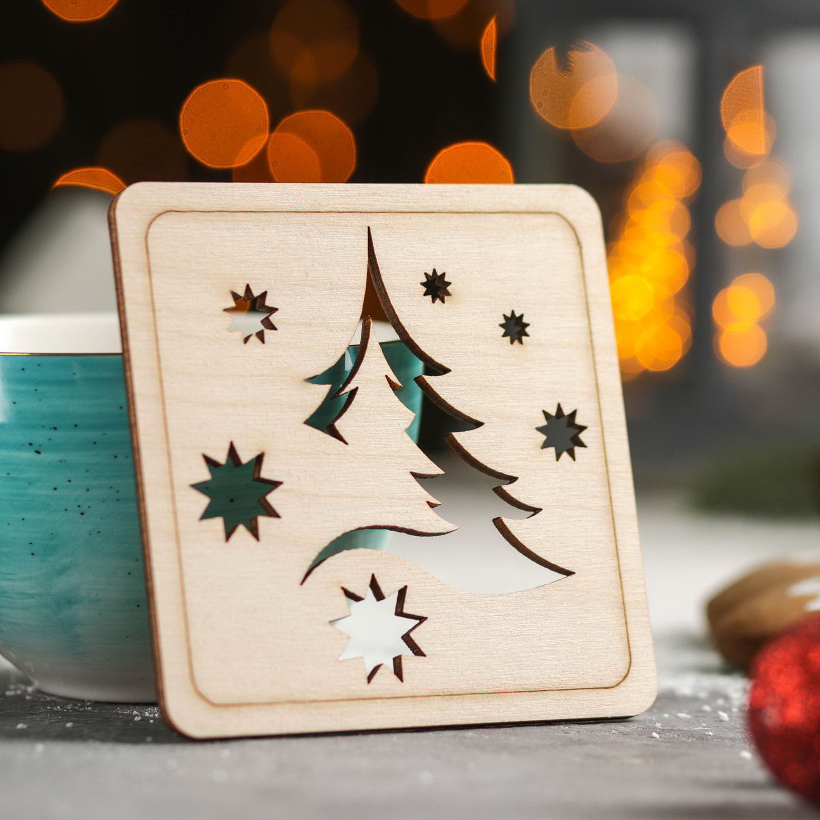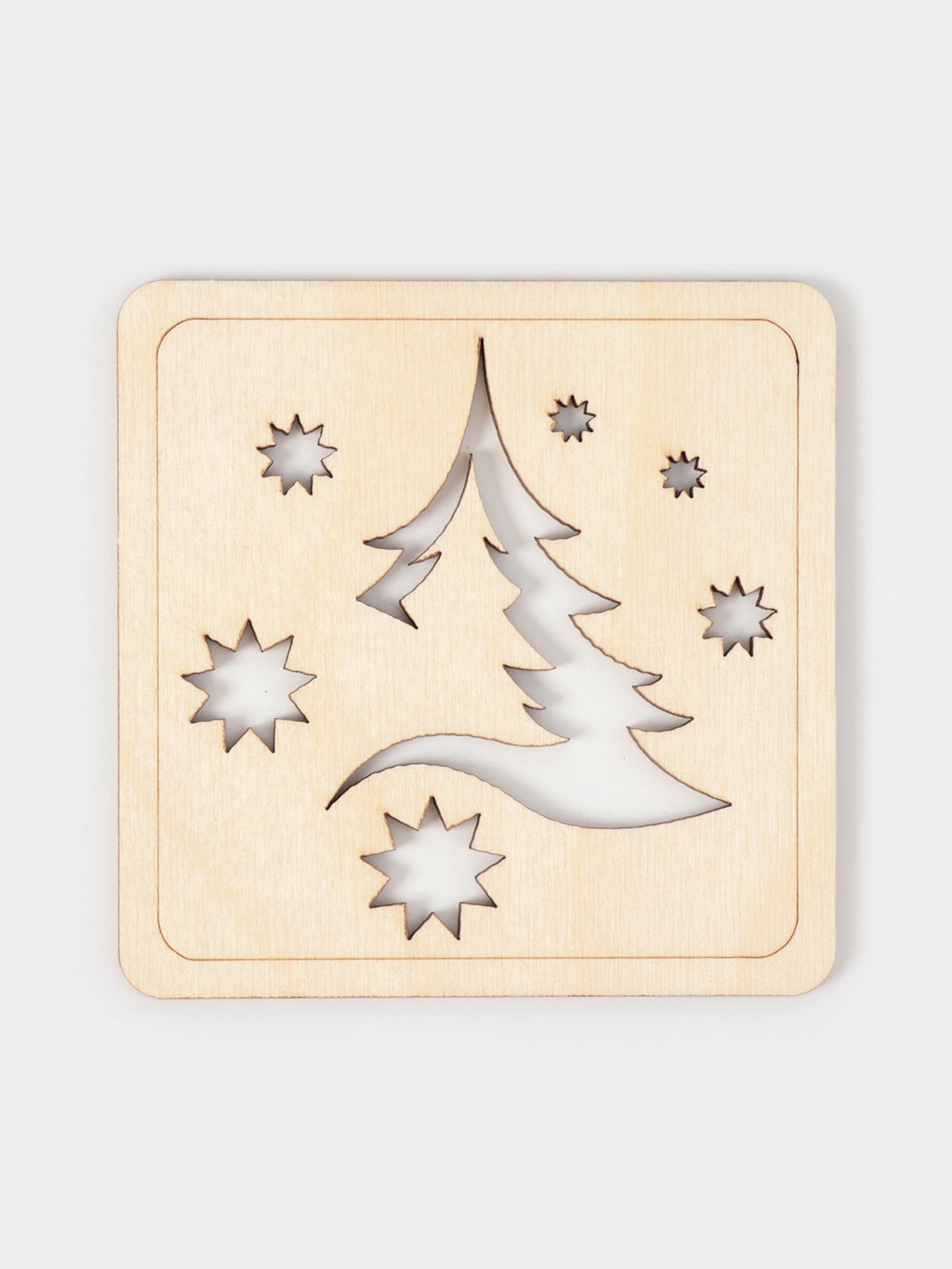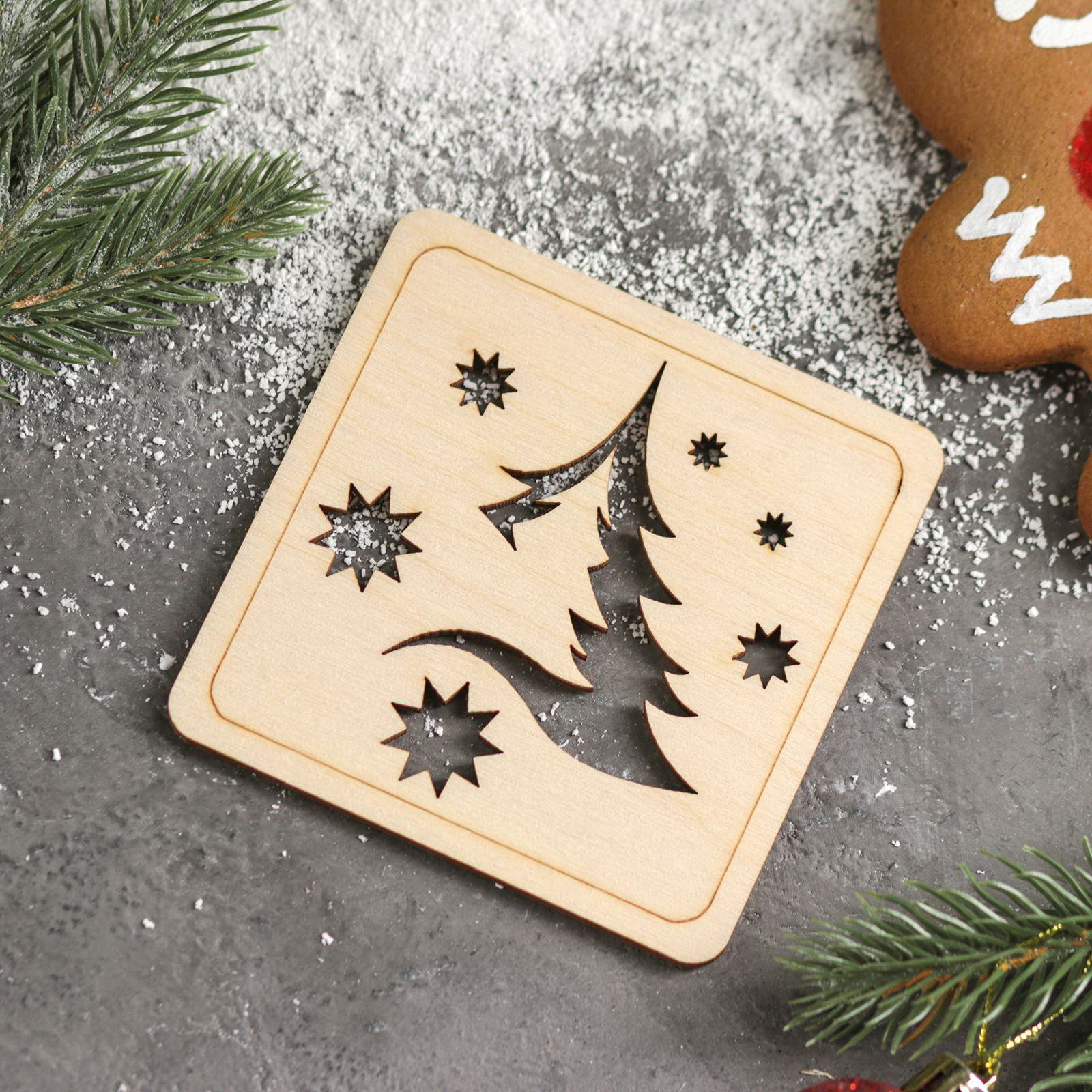 Подставка под горячее новогодняя "Ёлочка и снежинки", 9x9 см, дерево, Доляна, Россия