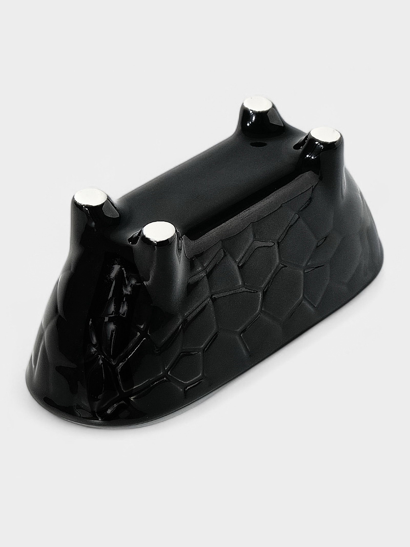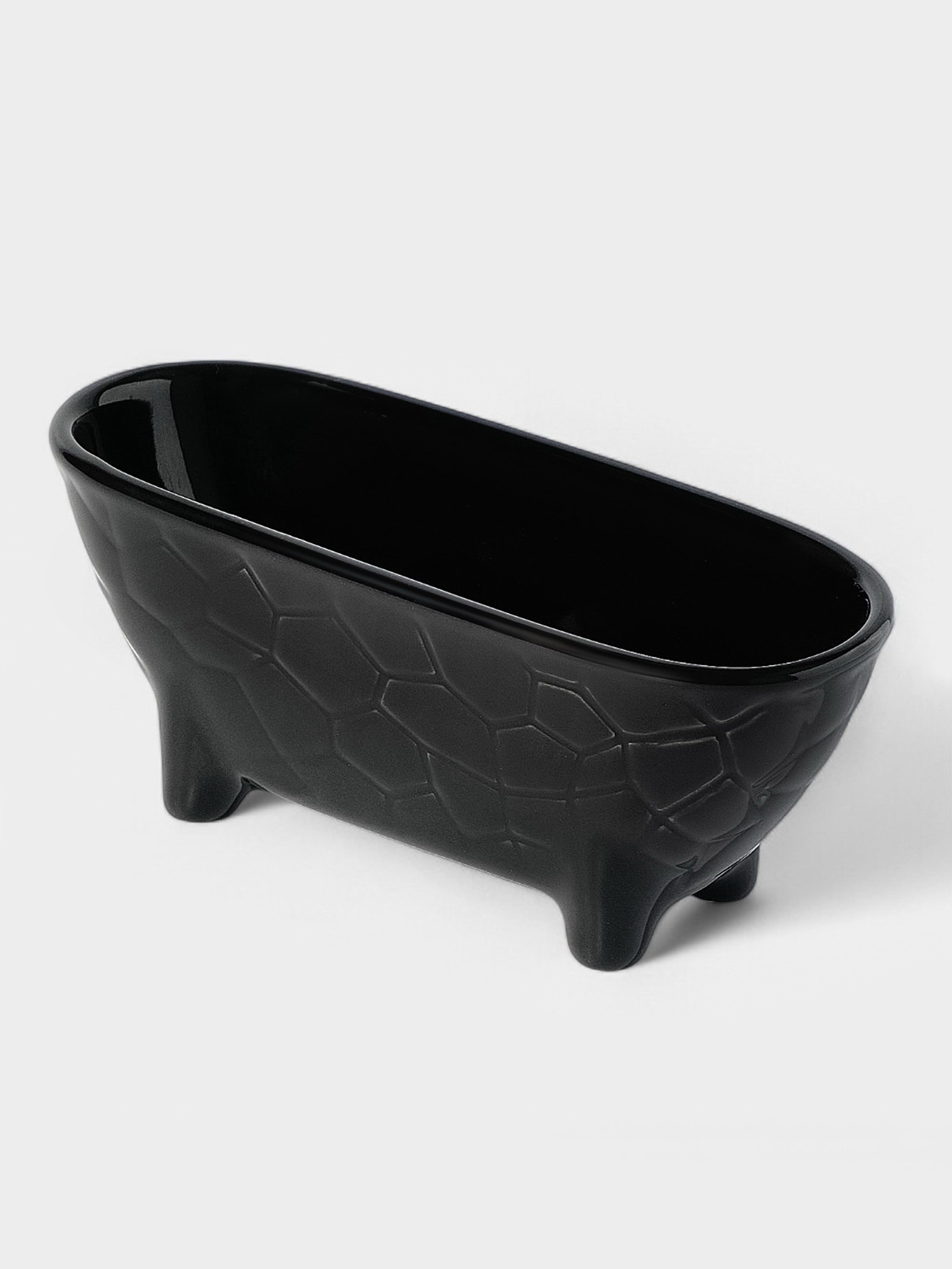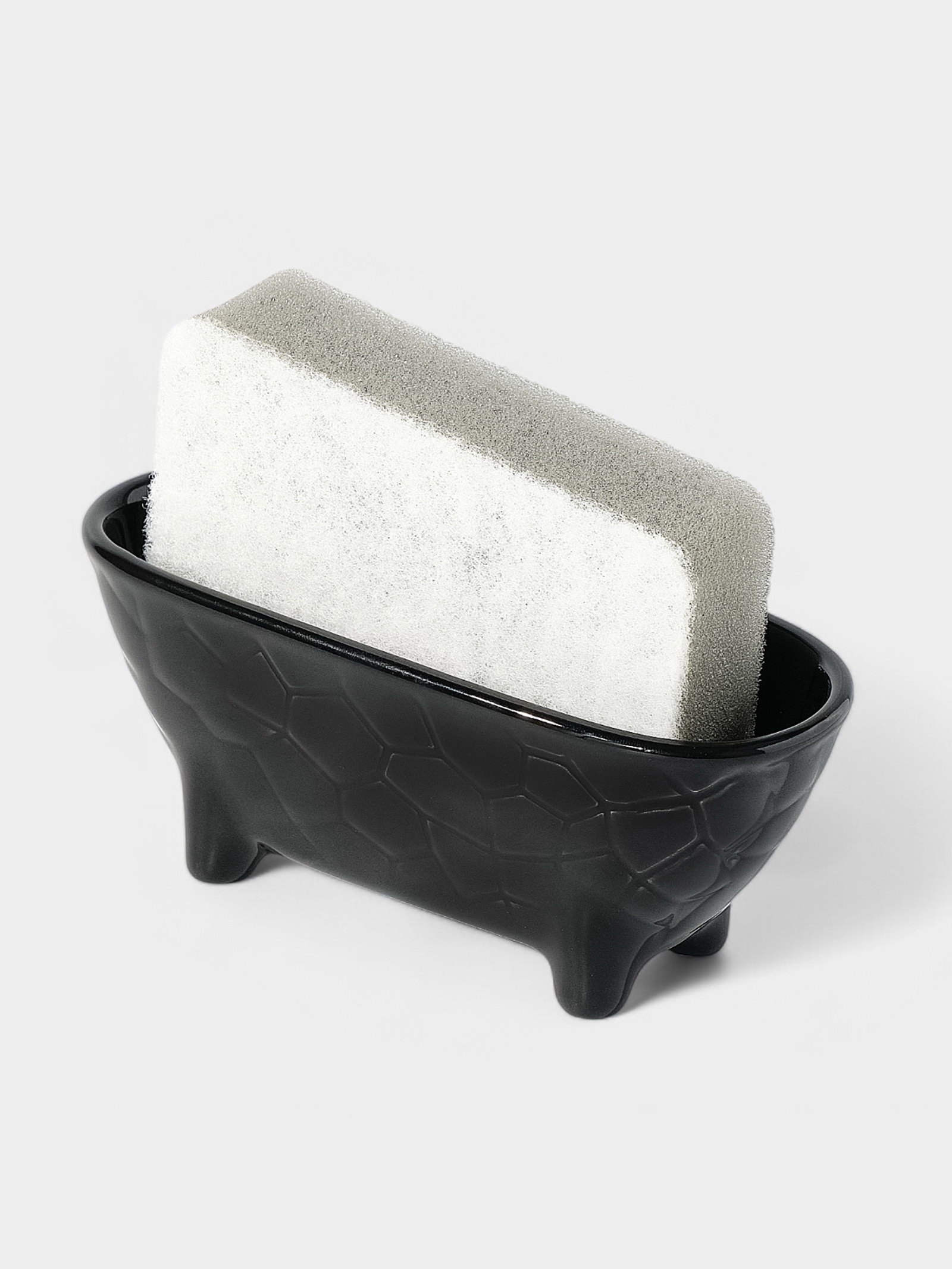 Размер упаковки: 6.5 x 9.3 x 15 см. Вид крепления: Настольные Рисунок: Да tnved: 6912008700 Цвет: Чёрный Керамическая подставка для губки практичный аксессуар для организации пространства у мойки. Черная матовая поверхность с рельефным узором создает стильный акцент. Настольное исполнение позволяет разместить подставку на любой поверхности. Преимущества