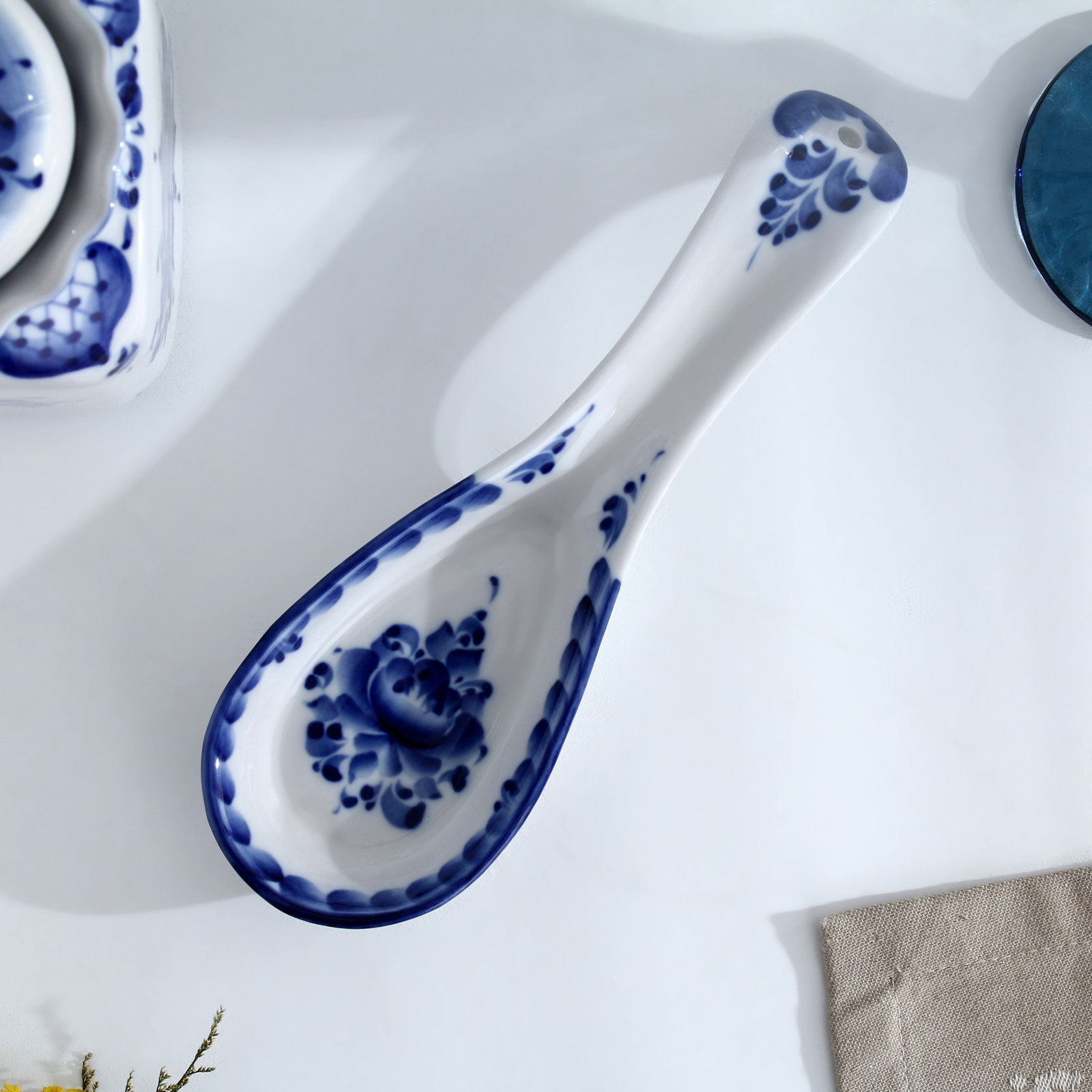 Подставка - ложка "Цветок", 6х23.5 см, гжель, 23.5x6x2 см., Россия