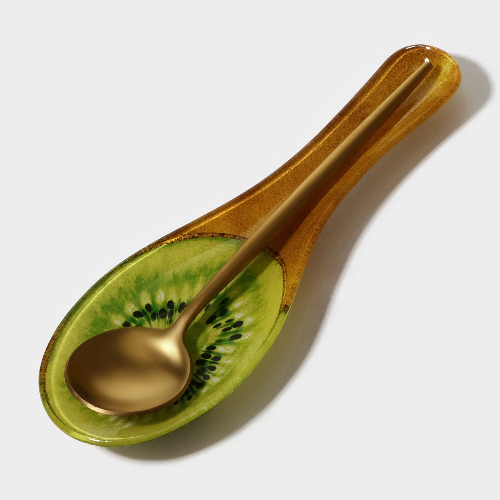 Подставка под ложку "Романтичный киви", 23.5x8.3x1.5 см, стекло, 8.3x23.5x1.5 см., Доляна, Китай