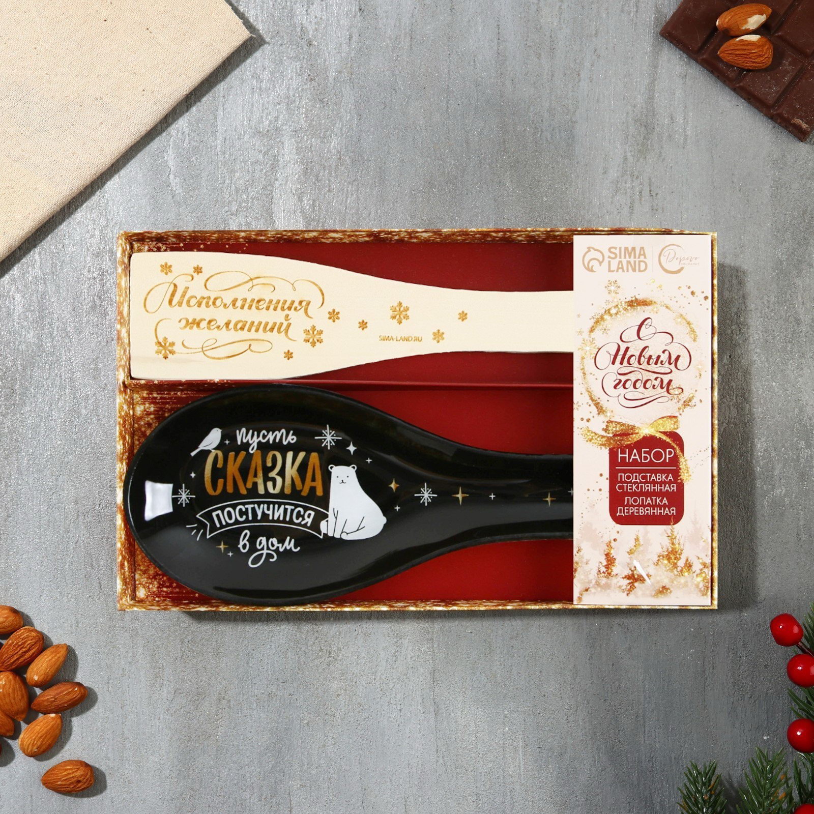 Подарочный набор новогодний "Счастье постучится в дом": подставка под ложку, лопатка, 13.5x22x2 см., Дорого внимание, Китай