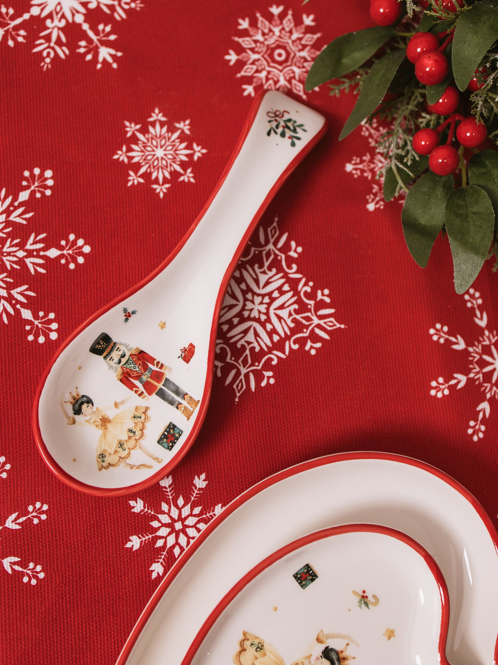 Подставка под ложку новогодняя "Сказочный бал.Щелкунчик", 22.3x7.1x2.5 см, доломит, белая, 7.1x22.3x2.5 см., Доляна, Китай