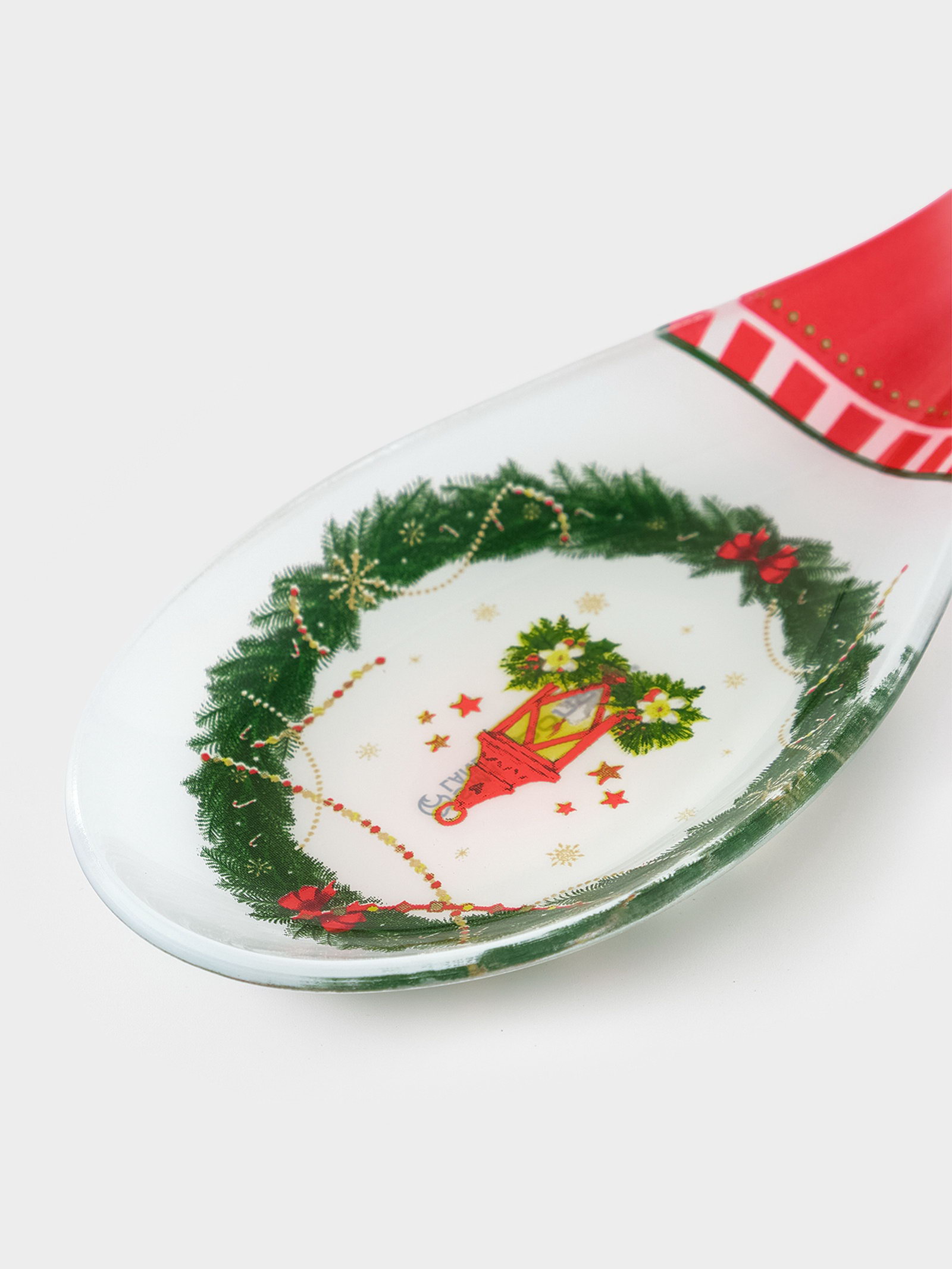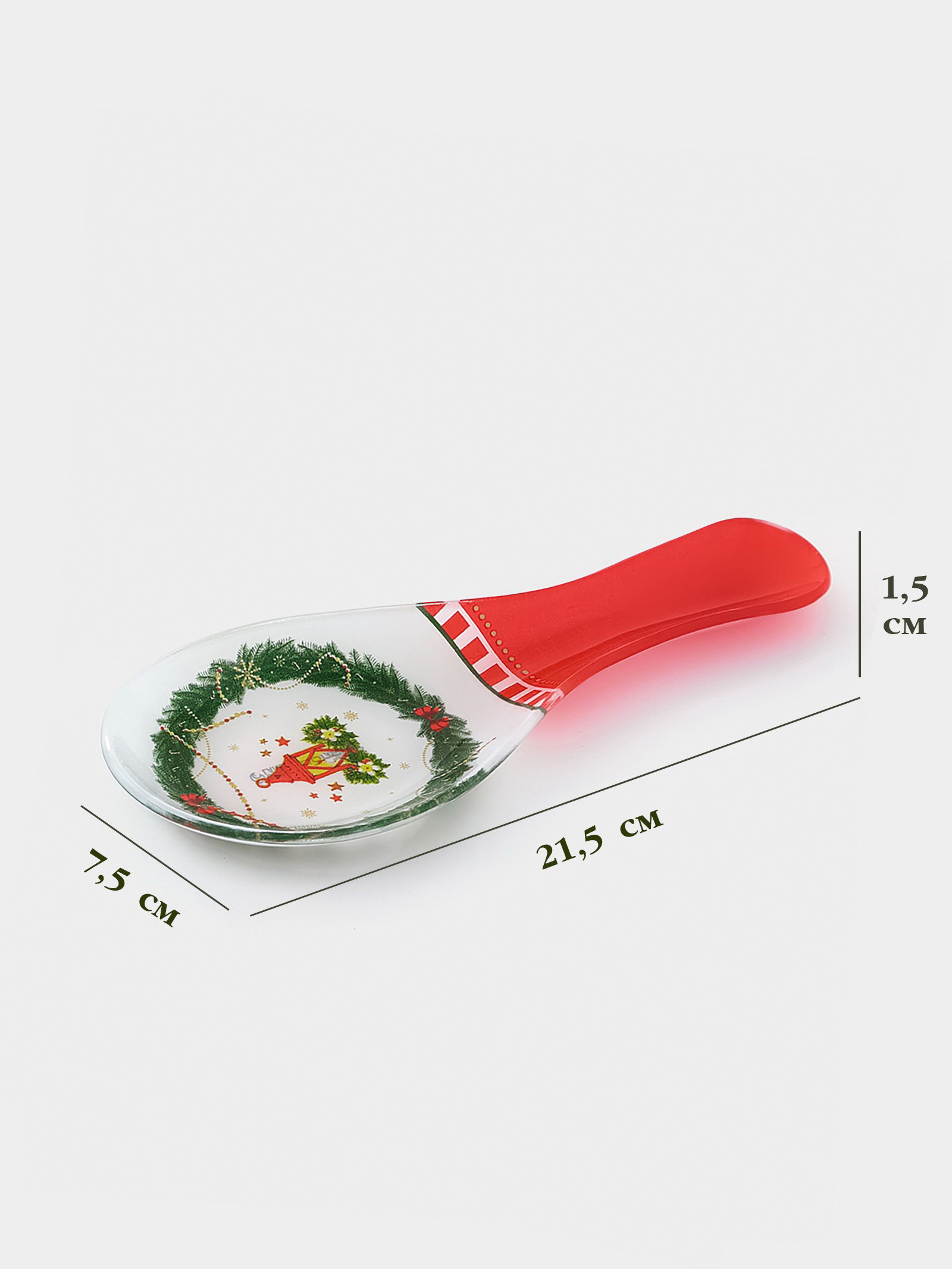 Подставка под ложку "Сказочное настроение", 21.5x7.5x1.5 см, стекло, белая, красная, 7.5x21.5x1.5 см., Доляна, Китай
