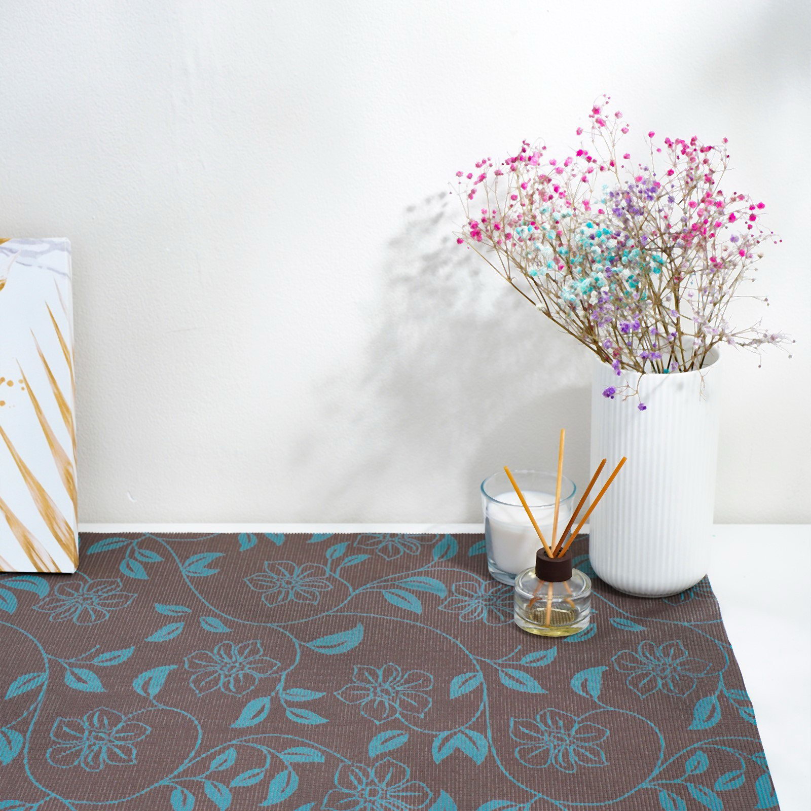 Коврик противоскользящий "Вьющиеся цветы", 45x100 см, цвет коричневый, 45x100x0.1 см., Доляна, Китай