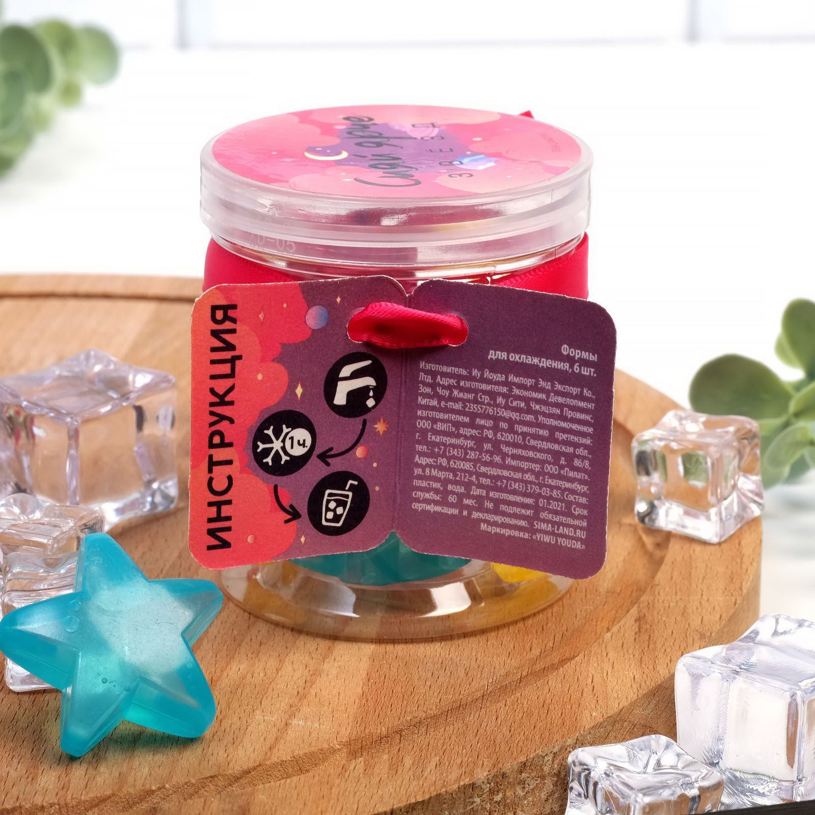 Кубики льда "Сияй ярче звезд", многоразовые, 6 шт, 6.5x7x6.5 см., Китай