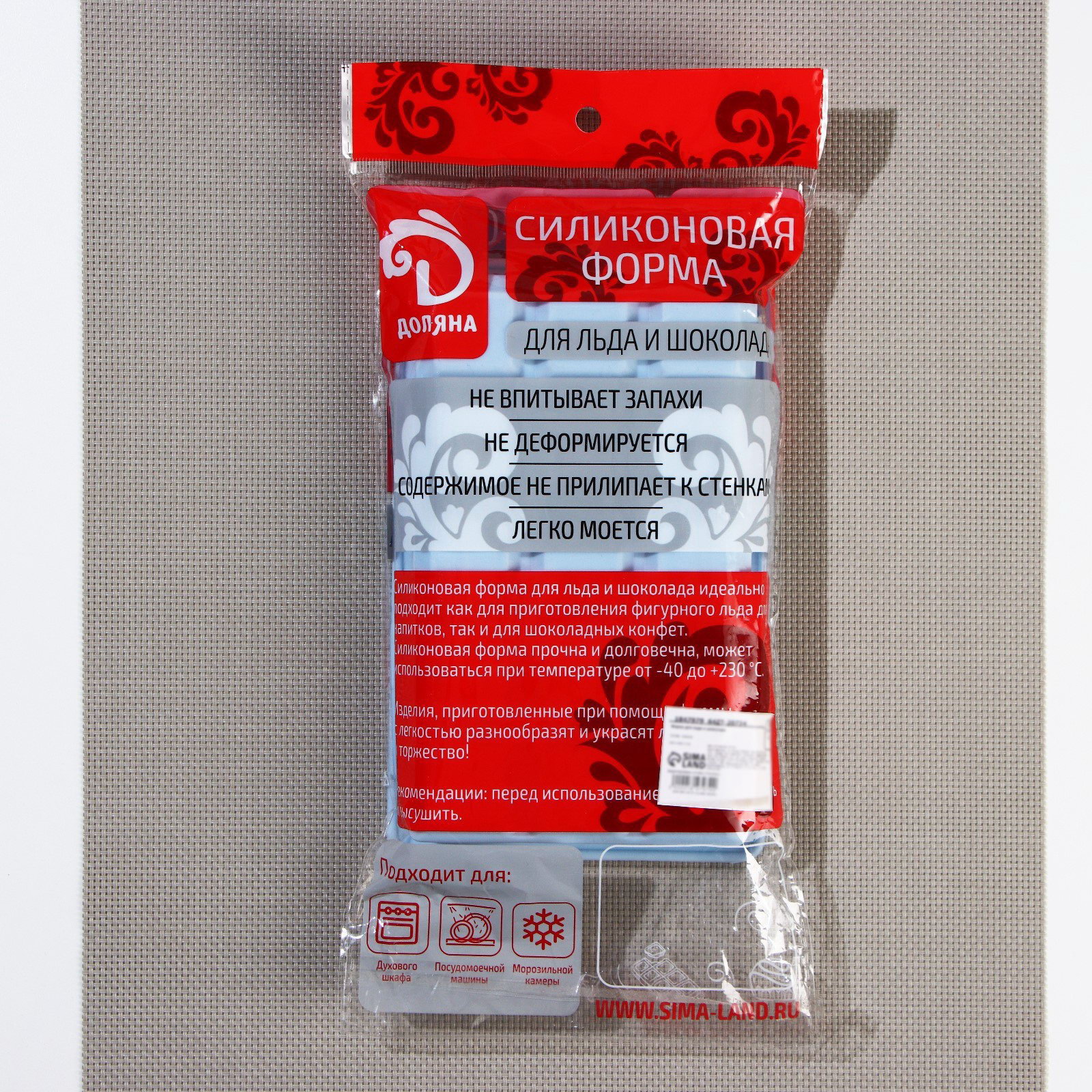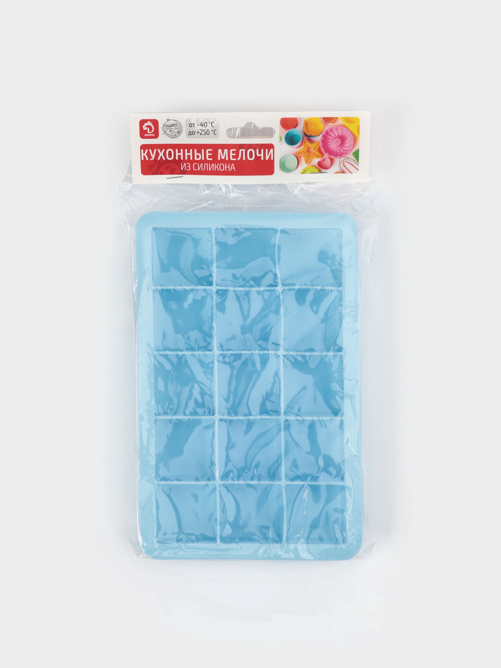 Форма для льда "Кубик", силикон, 11.7x18.7x3.4 см, 15 ячеек, 18.7x11.7x3.4 см., Доляна, Китай