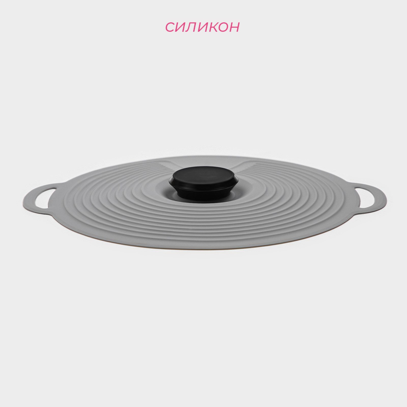 Крышка универсальная силикон, d=27.5 см, цвет серый, 27.5х27.5х1.5 см., Доляна, Китай