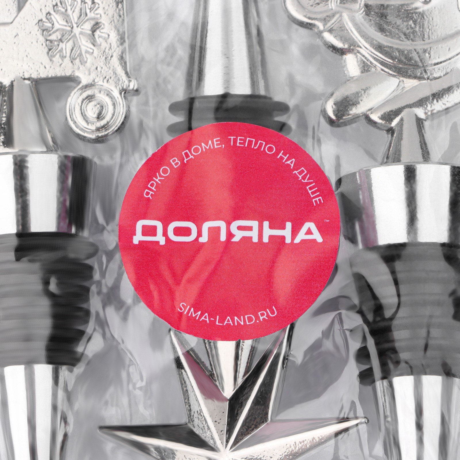 Набор пробок для бутылок "Новогодний", 3 шт., серебристый, 15x4.5x12 см., Доляна, Китай