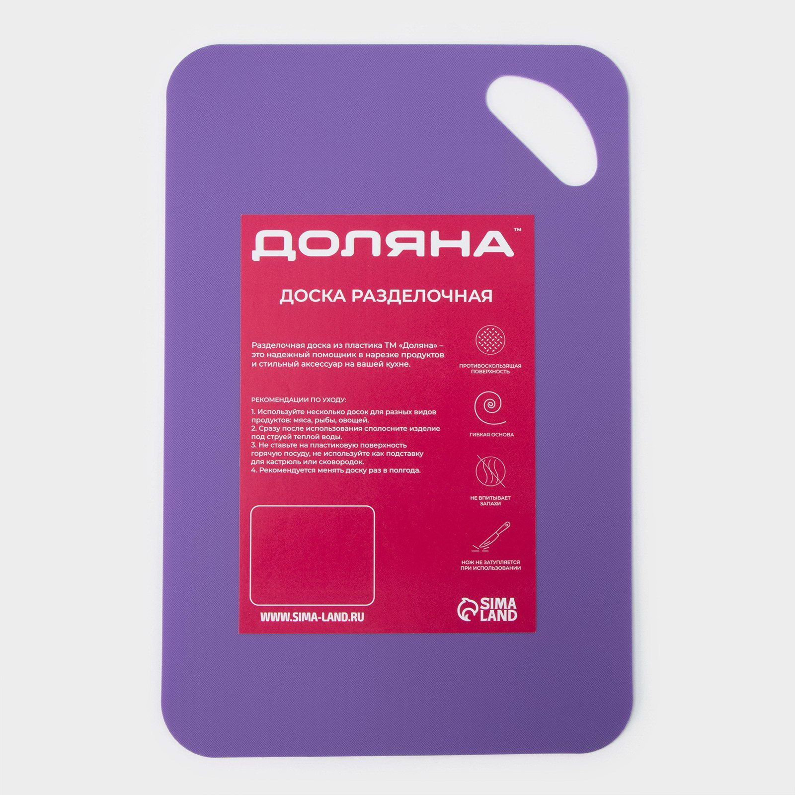 Доска разделочная противоскользящая гибкая 29x19 см, фиолетовая, 19x28.5x0.1 см., Доляна, Китай
