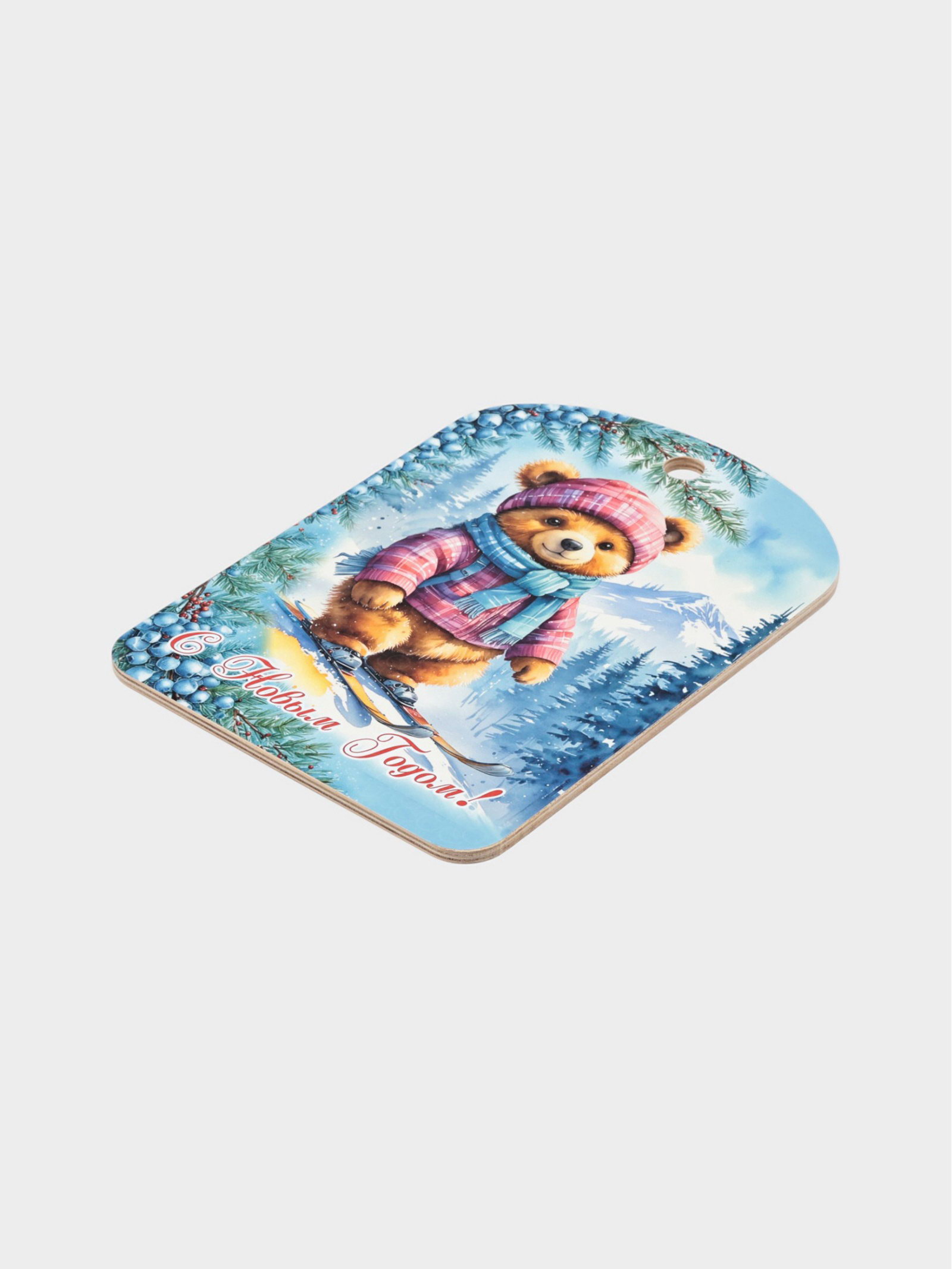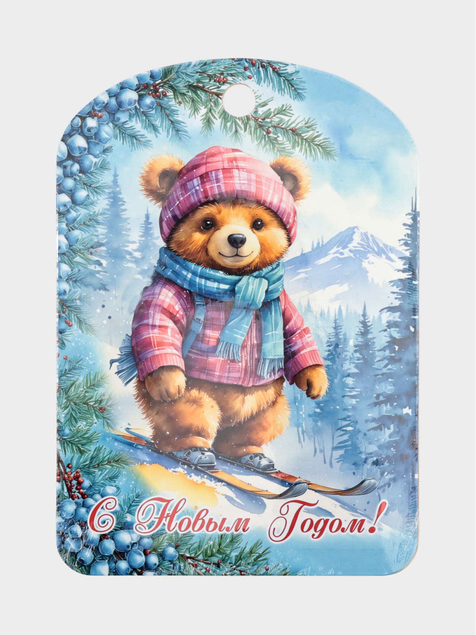 Доска разделочная сувенирная "С Новым годом! Мишка на лыжах", дерево, 28x18x0.6 см, разноцветная, Дарим Красиво, Россия