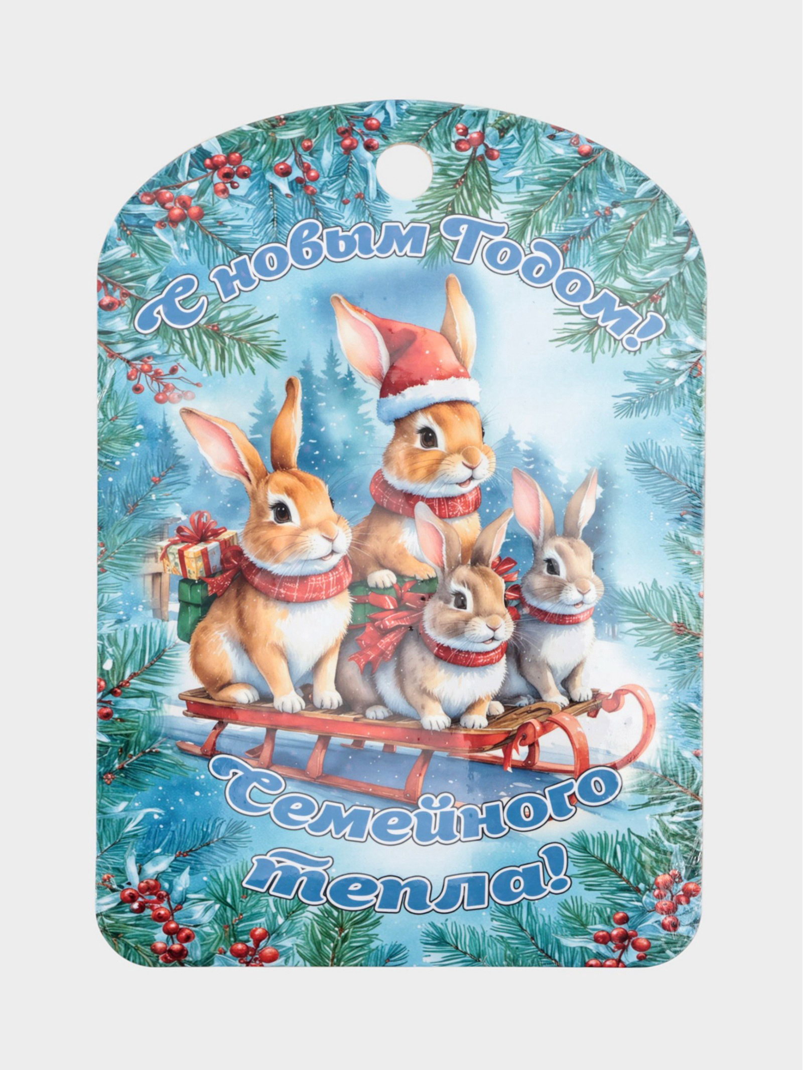 Подарок с характером Такая доска тёплый и осмысленный сувенир для тех, кто встречает праздник в кругу семьи. Кролики на деревянном фоне символизируют уют, заботу и тихую радость зимы. Подарите её близкому человеку и пусть каждый взгляд на кухню напоминает: самое ценное в Новом году это те, кто рядом. | ||