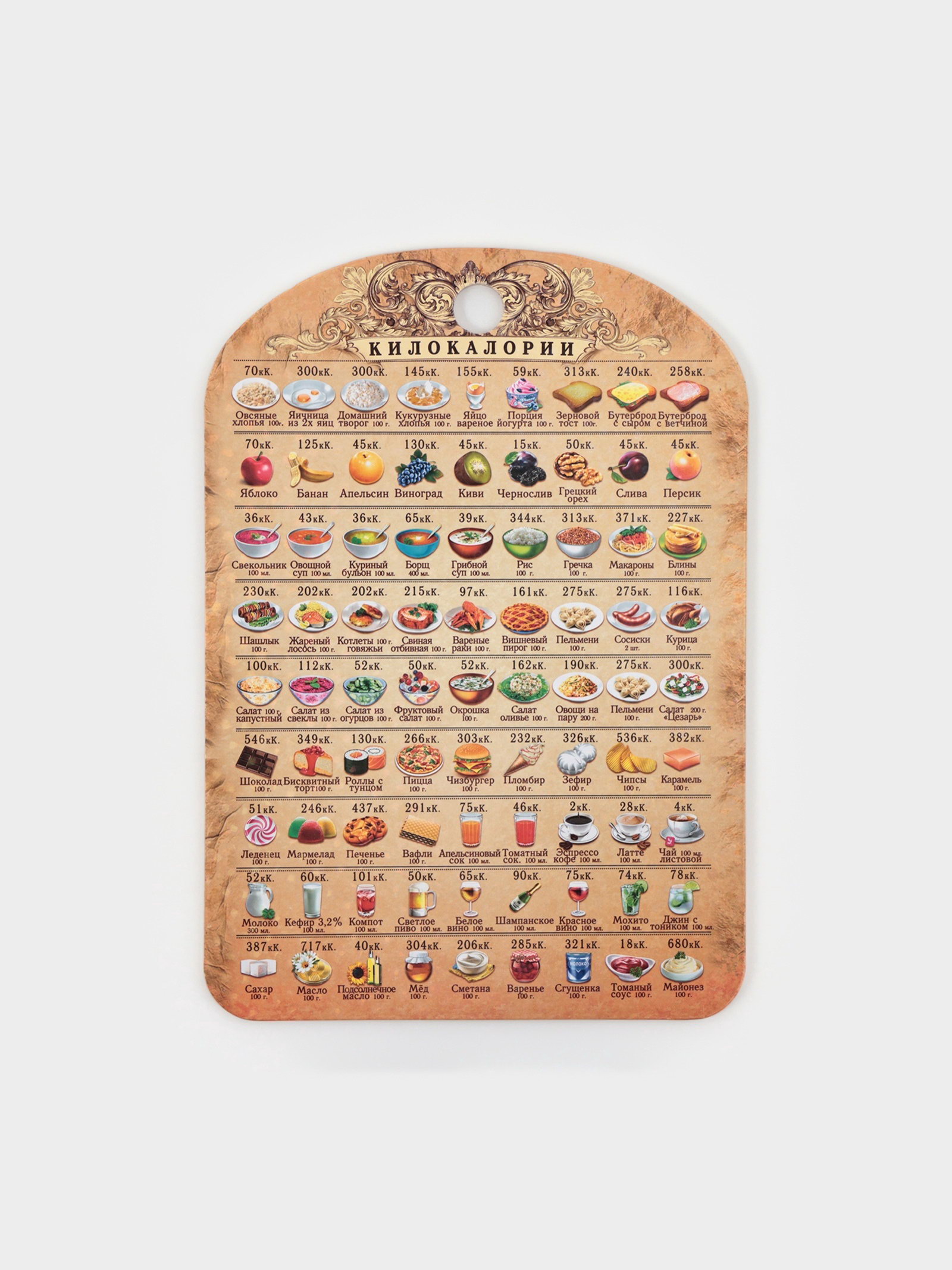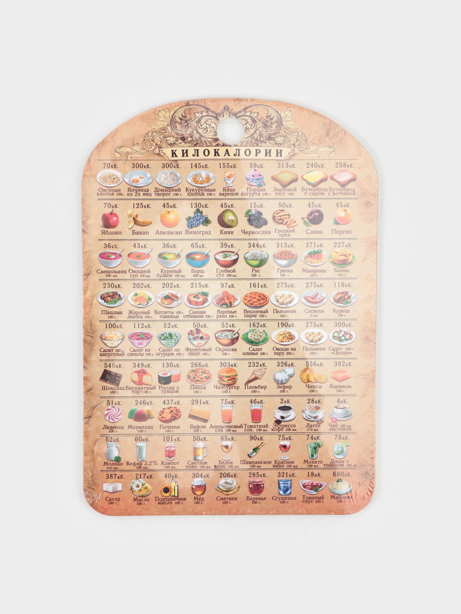 Доска разделочная сувенирная "Калорийность", 19.5x27.5 см, дерево, разноцветная, Дарим Красиво, Россия