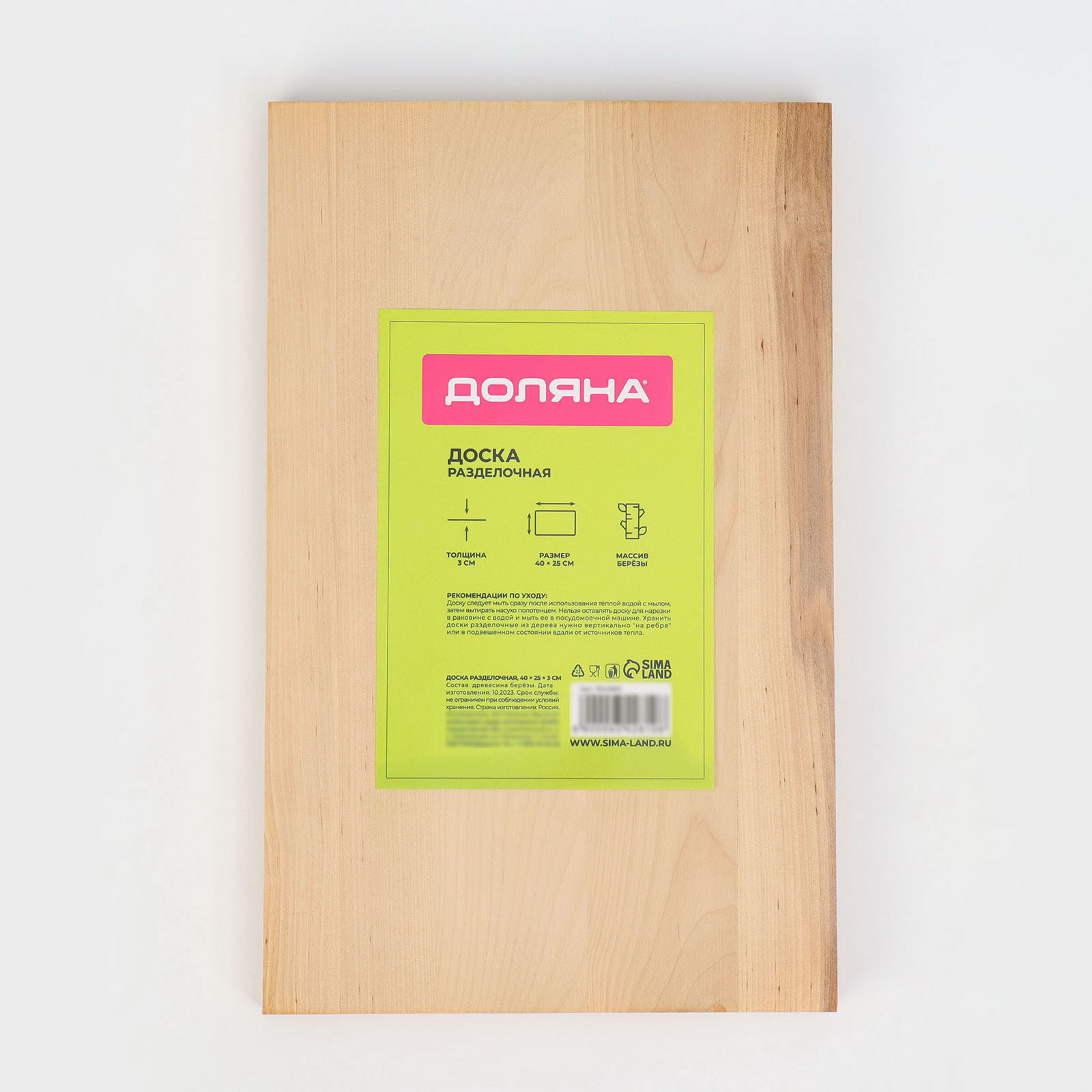 Доска разделочная 40x25x3 см, дерево массив берёзы, Доляна, Россия