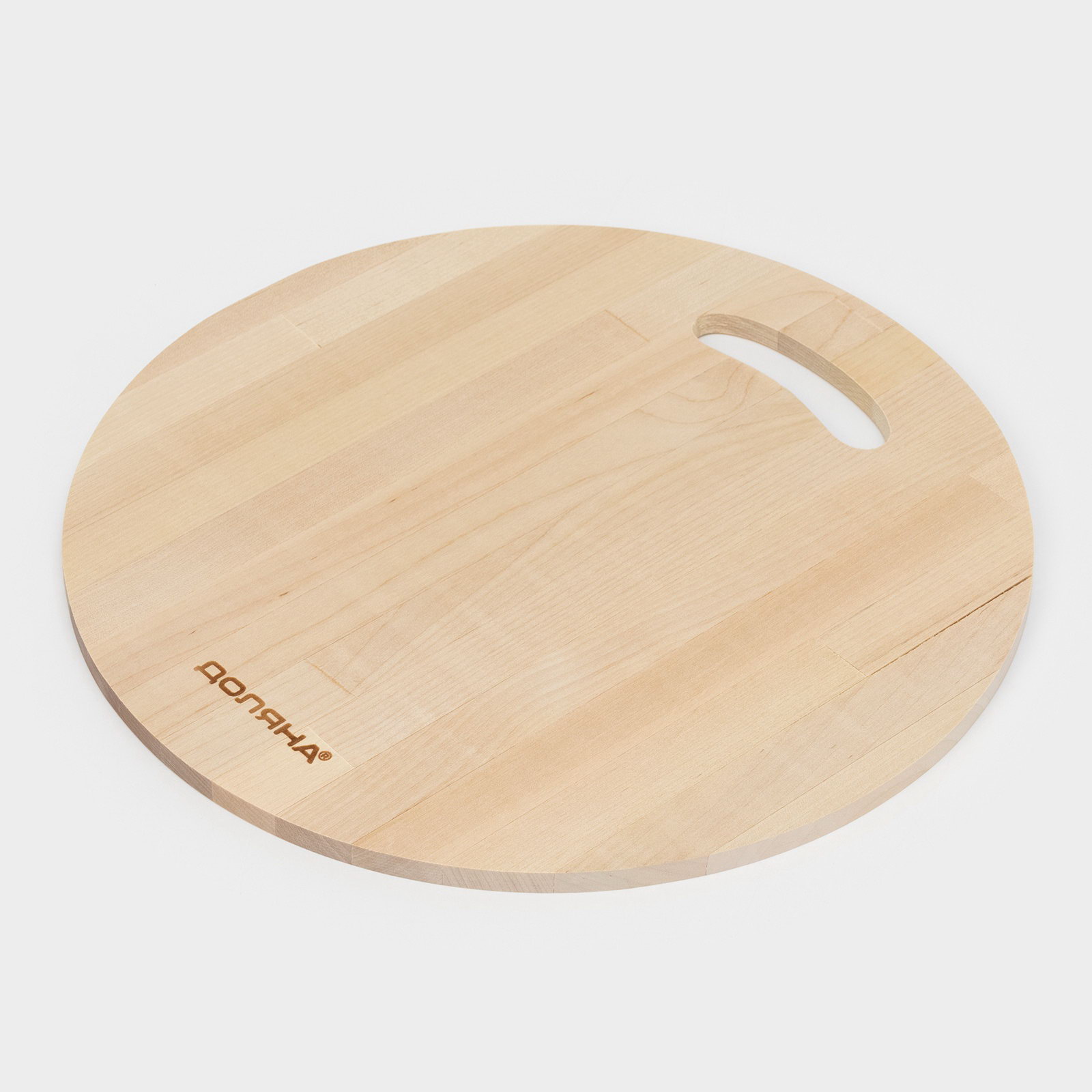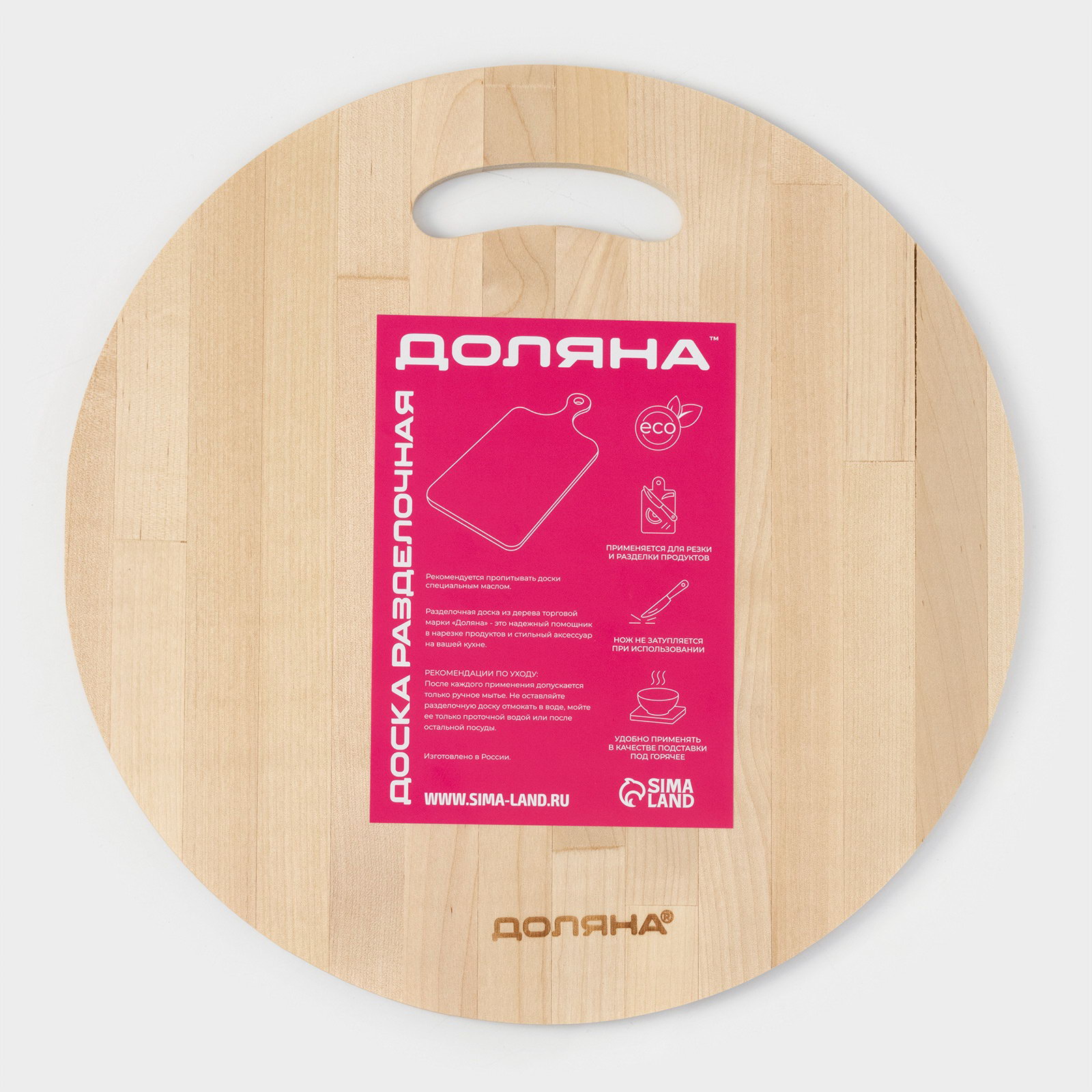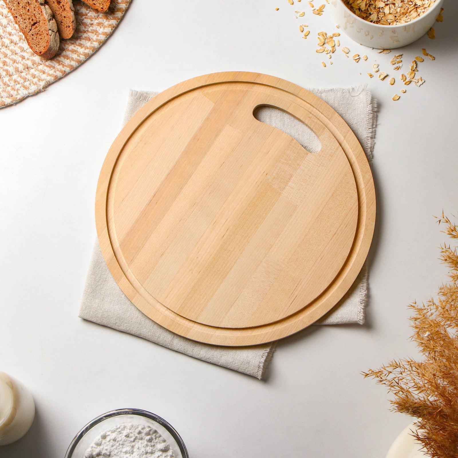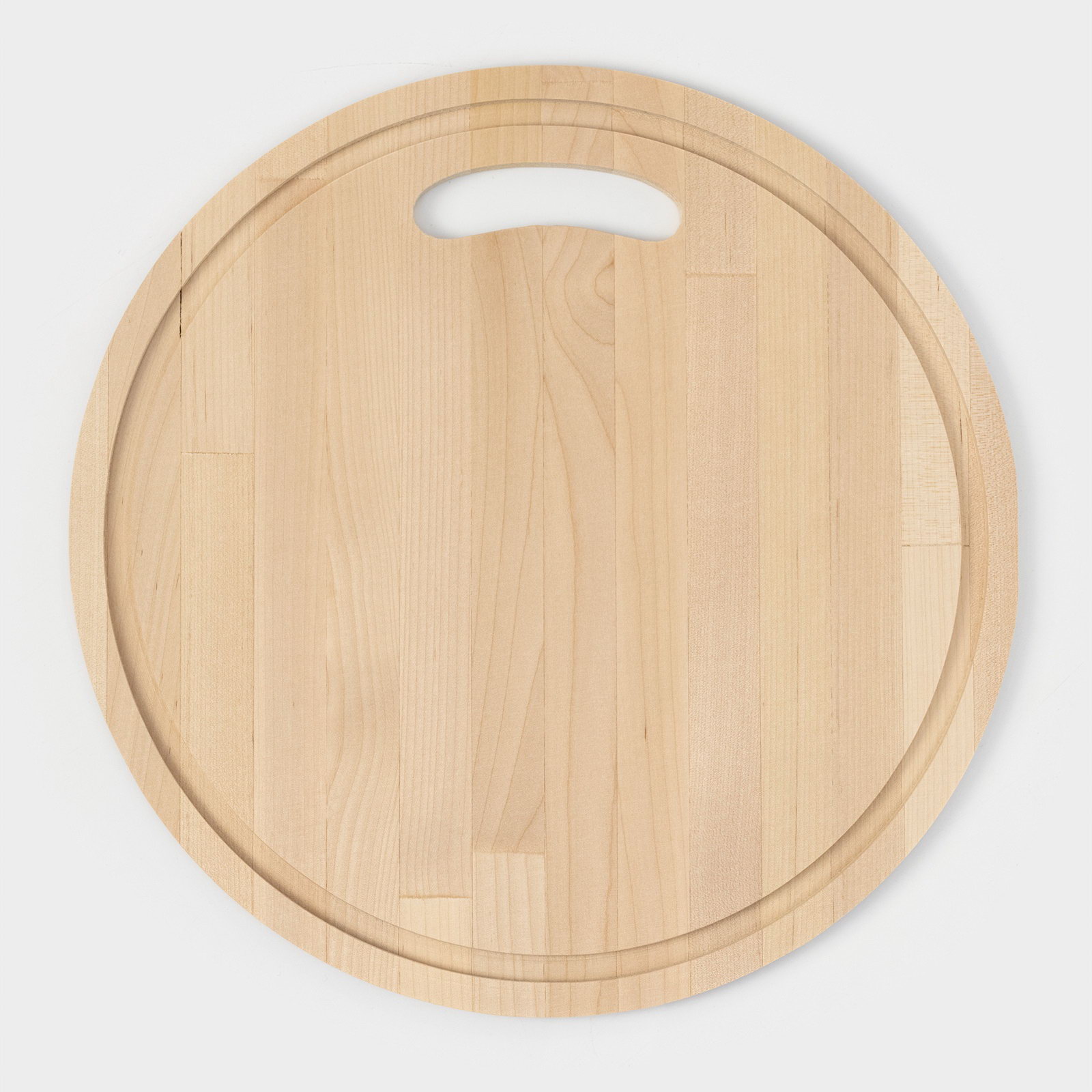 Доска разделочная деревянная круглая с желобом, d=28 см, толщина 0.8 см, массив березы, Доляна, Россия
