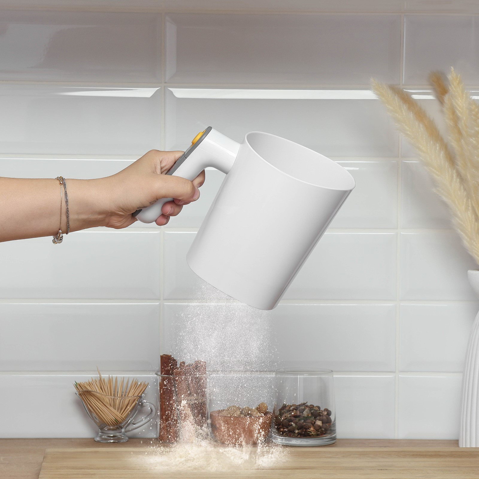 Просеиватель для муки Powder, автоматический, 1 л, белый, 12.5x18x16 см., Доляна, Китай