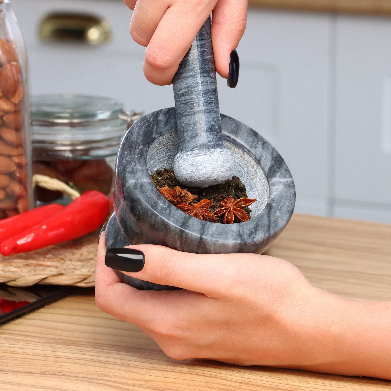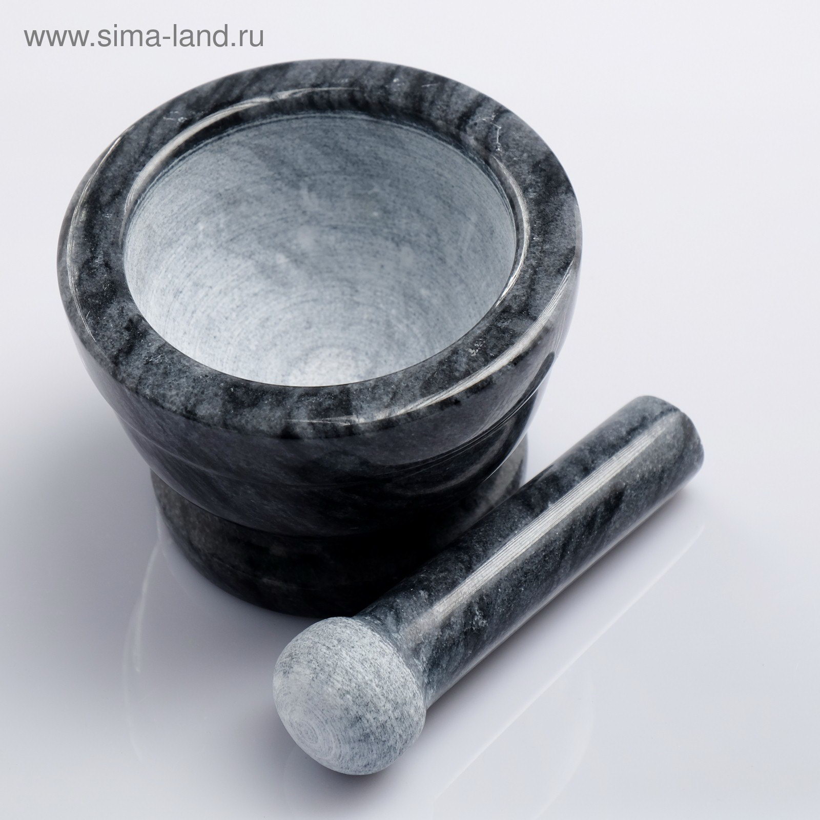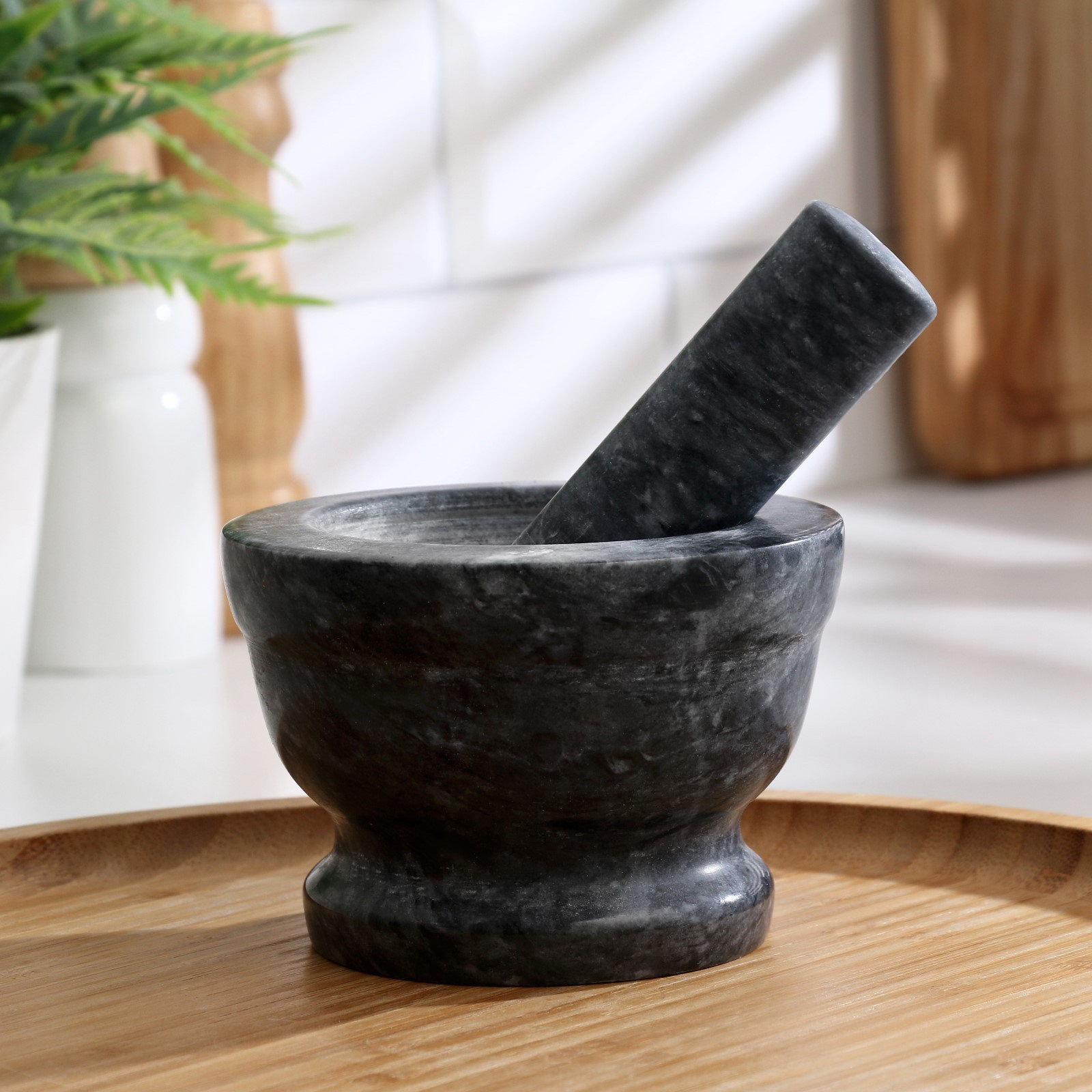 Ступка с пестиком, 130 мл, 10 см, мрамор, чёрная, 10х10х7 см., Доляна, Китай