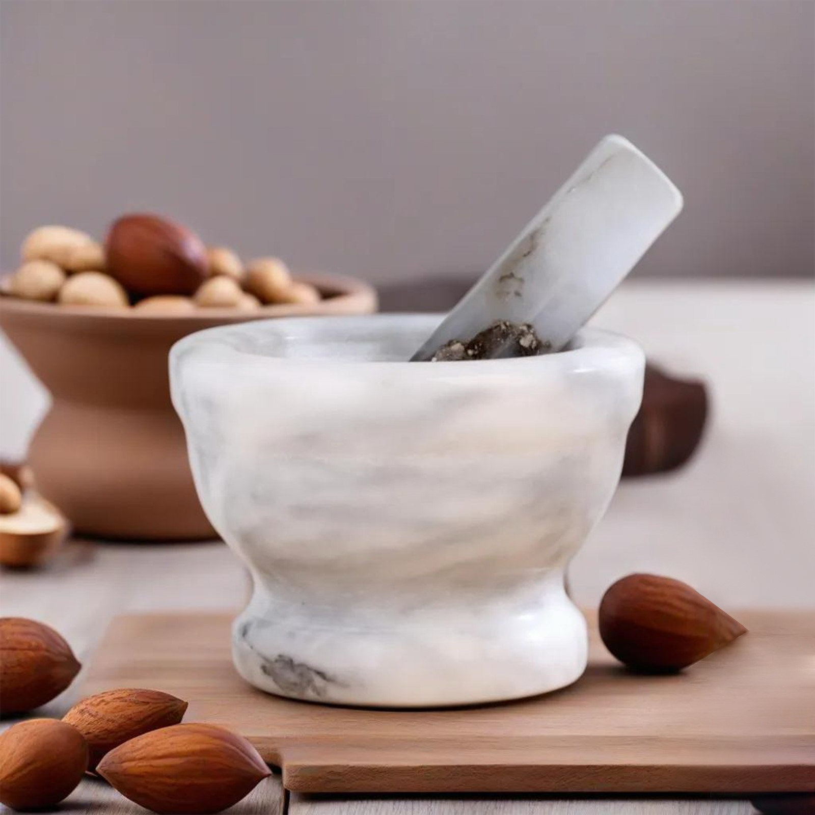 Ступка с пестиком, 130 мл, 10 см, камень, белая, 10х10х7 см., Доляна, Китай