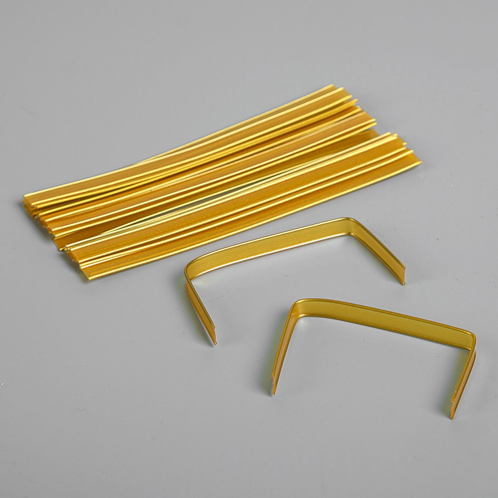 Клип лента в нарезке, золотой, для фиксация упакованной продукции, 13 см, Россия