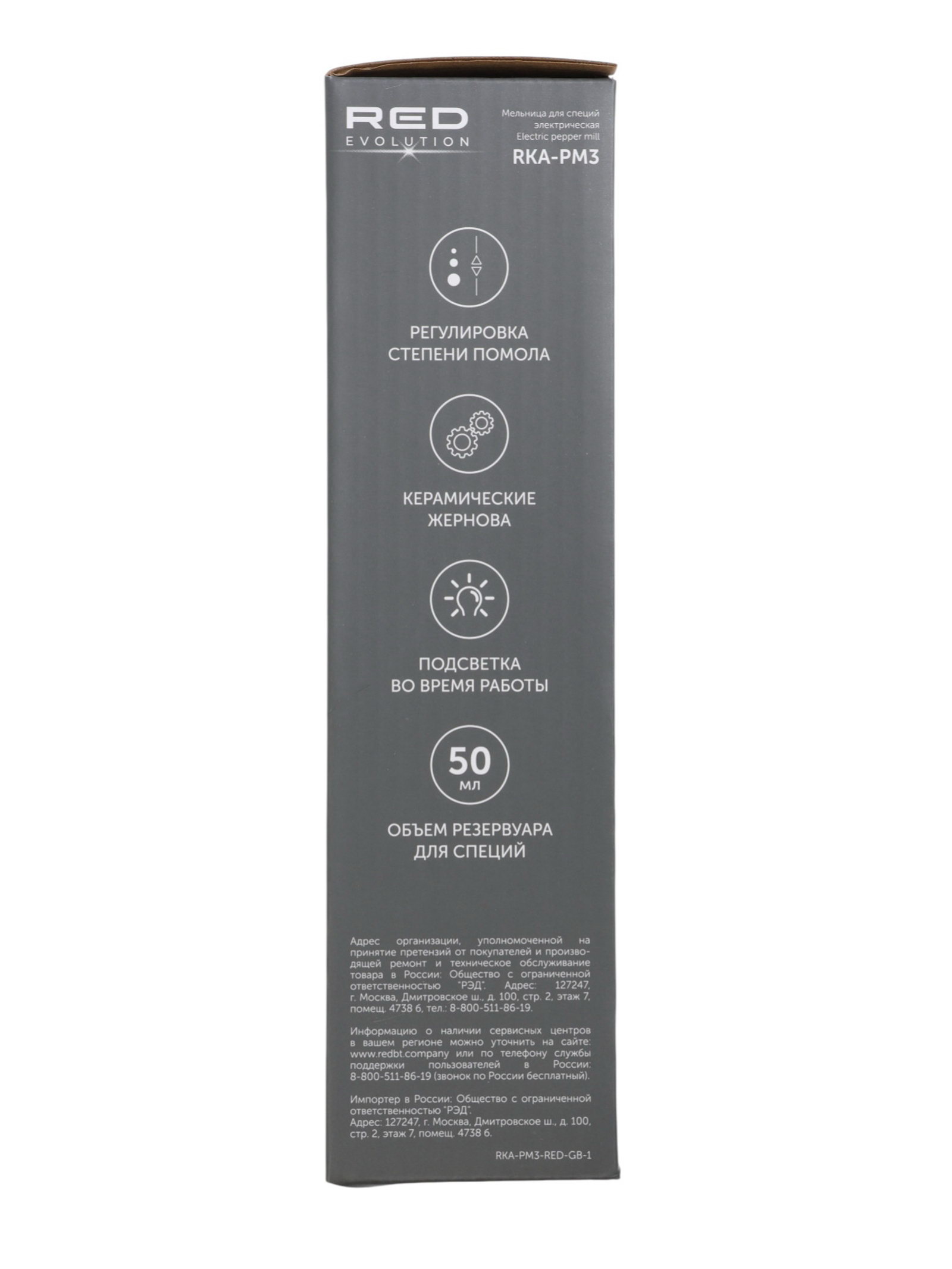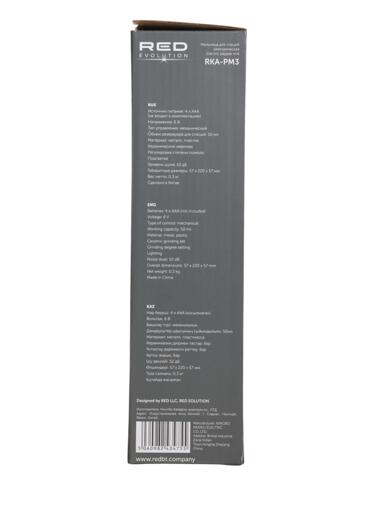 Мельница для специй RED EVOLUTION RKA-PM3, электрическая, 3 степени помола, 50 мл, от батареек 4хААА, RED solution, Китай