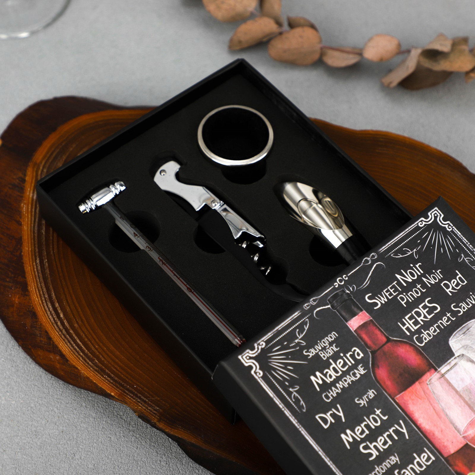 Подарочный набор штопор, аэратор, каплеуловитель, термометр "Merlot", 16x14x2.8 см., Дорого внимание, Китай