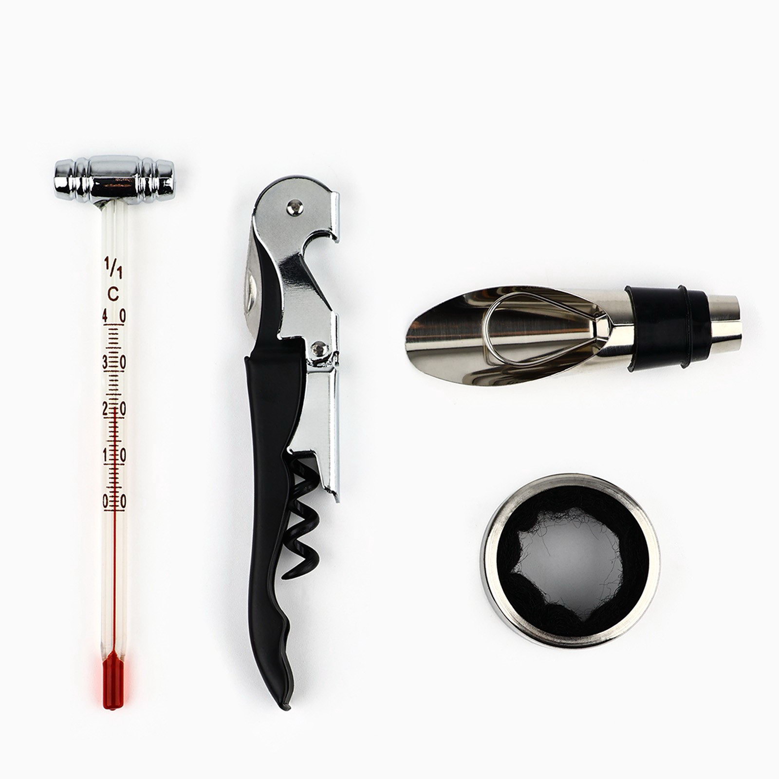 Составляющие набора: Аэратор, Манжета-каплеуловитель, Термометр, Штопор Размер упаковки: 13.5 x 3 x 15.5 см. Цвет: Чёрный Набор: Да Можно мыть в посудомоечной машине: Нет Рисунок: Да tnved: 8205510000 tnved: 8205510000 В наборе, шт.: 4 Тематика праздника: Универсальная тематика Для кого: Для мужчины Возраст: Для взрослых Вид упаковки: Коробка Адресат: Без адресата Тематика подарка: Посуда | ||