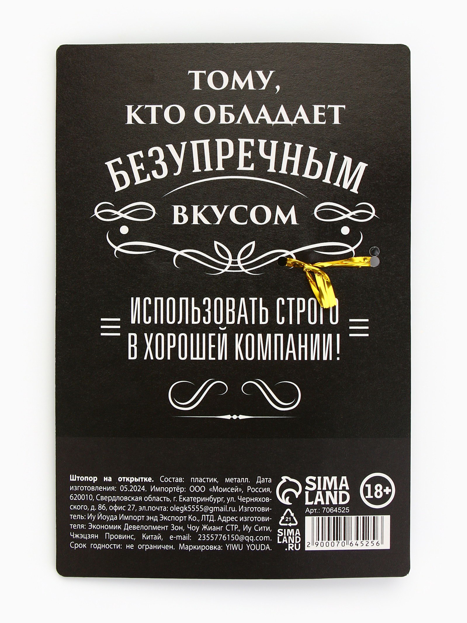 Штопор на открытке "Джентльмен" 10 x 15 см, 10x15x1.5 см., Дорого внимание, Китай