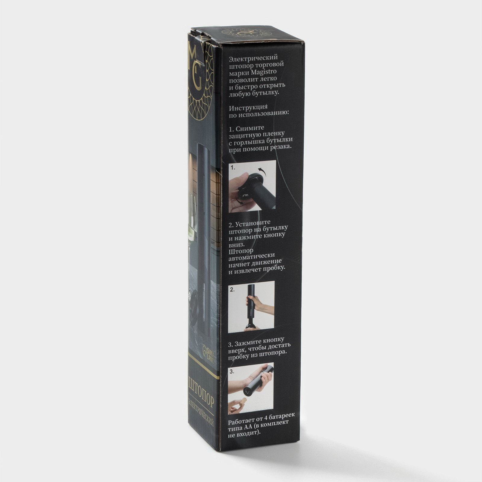 Штопор электрический Opium, 23x4.8 см, чёрный, 4.8x4.8x23 см., Magistro, Китай