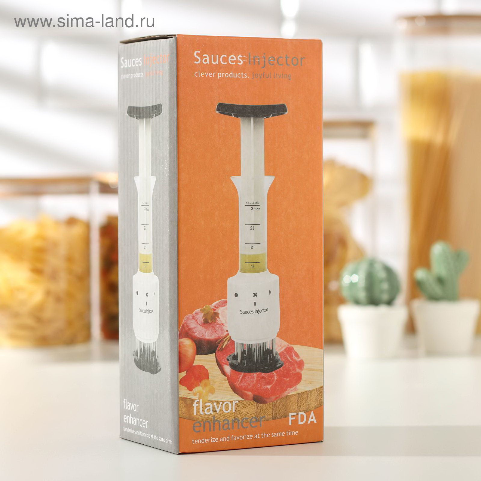 Размер упаковки: 7.5 x 23.5 x 9.5 см. tnved: 8205510000 tnved: 8205510000 Тендерайзер это ручной разрыхлитель для мяса. Его используют, чтобы ускорить процесс приготовления свинины, курицы, говядины, баранины и рыбы. Он поможет значительно сэкономить время, затрачиваемое на готовку обеда. Как он работает? Мясо одновременно прокалывается несколькими острыми ножами по всей площади. Благодаря этому оно становится мягче и нежнее, рассол и специи лучше проникают между волокон. Встроенный шприц выпускает маринад в мясо через 3 иглоподобных аппликатора. | ||