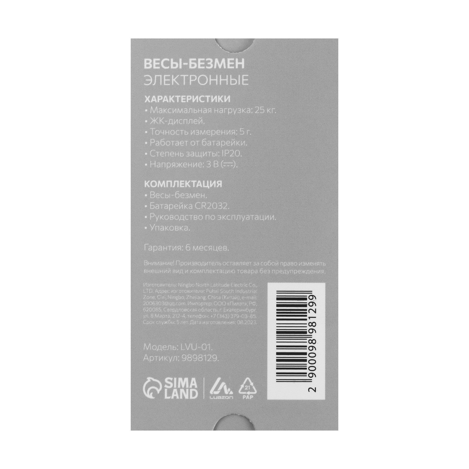 Весы-безмен Luazon LVU-01, электронные, до 25 кг, точность до 5 г, подсветка, коричневые, 8.1x14.1x2.3 см., Luazon Home, Китай