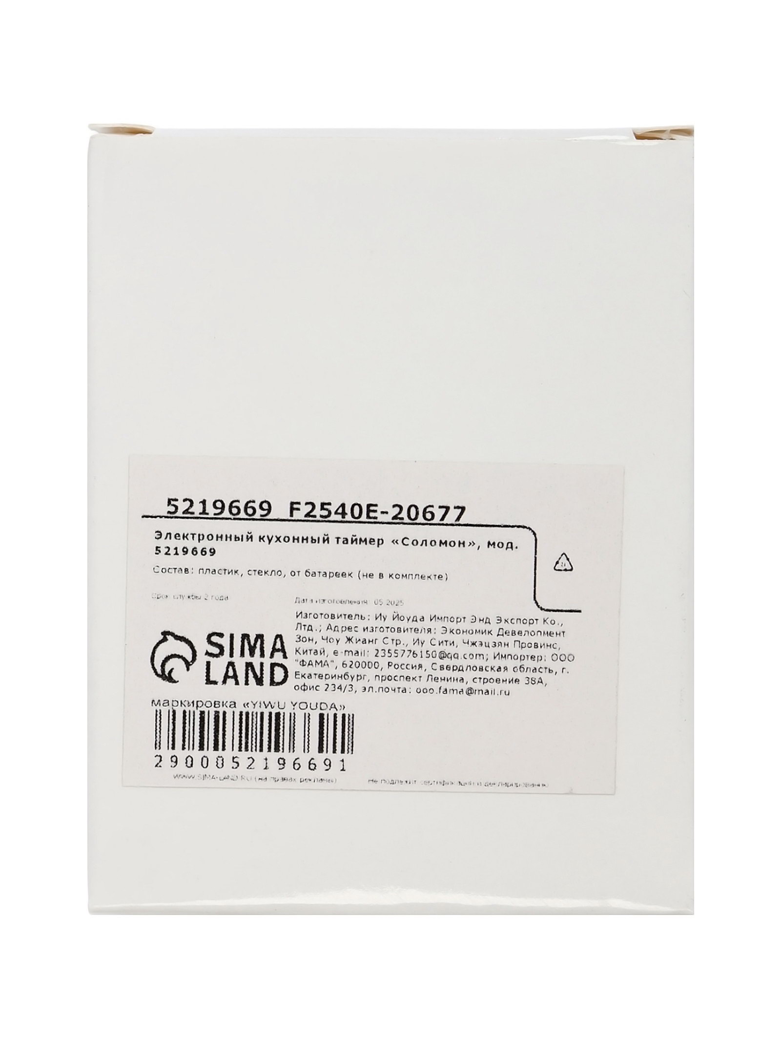 Размер упаковки: 6 x 1.5 x 7.5 см. Вид установки: Настольный Материал корпуса: Пластик Форма: Прямоугольник Цвет корпуса: Чёрный Тип питания: От батареек Тип таймера: Электронный Цвет индикации: Чёрный Особенности: С магнитом Подсветка: Нет tnved: 9106900000 tnved: 9106900000 Форма корпуса: Прямоугольная Работает от сети: Нет Цвет: Чёрный Тип управления: Кнопки Типоразмер батареек: AG10 (L1131) Вид крепления: Магнит Звуковой сигнал: Да Таймер кухонный на магните "Соломон" - это надежный помощник не только на кухне, но и в быту. Кухонный таймер прекрасно подойдет для самых различных бытовых нужд, кулинарии, приема лекарств, спортивных занятий и в любых других сферах, где нужно отслеживать четкие промежутки времени. По нажатию кнопок M и S устанавливаются минуты и секунды соответственно. Одновременное нажатие этих кнопок приводит к сбросу значений. Кнопка ST/SP служит для запуска и остановки таймера. Таймер кухонный электронный имеет функцию прямого и обратного отсчета. Максимальное время, на которое вы можете поставить отсчет, составляет 99 минут 59 секунд (181 минута). Громкий, но неназойливый звуковой сигнал отключается через 30 секунд или после нажатия на любую клавишу. Таймер снабжен мощным магнитом, его без труда можно установить в удобное для вас место на кухне, например, на дверцу или стенку холодильника, на вытяжку. | ||