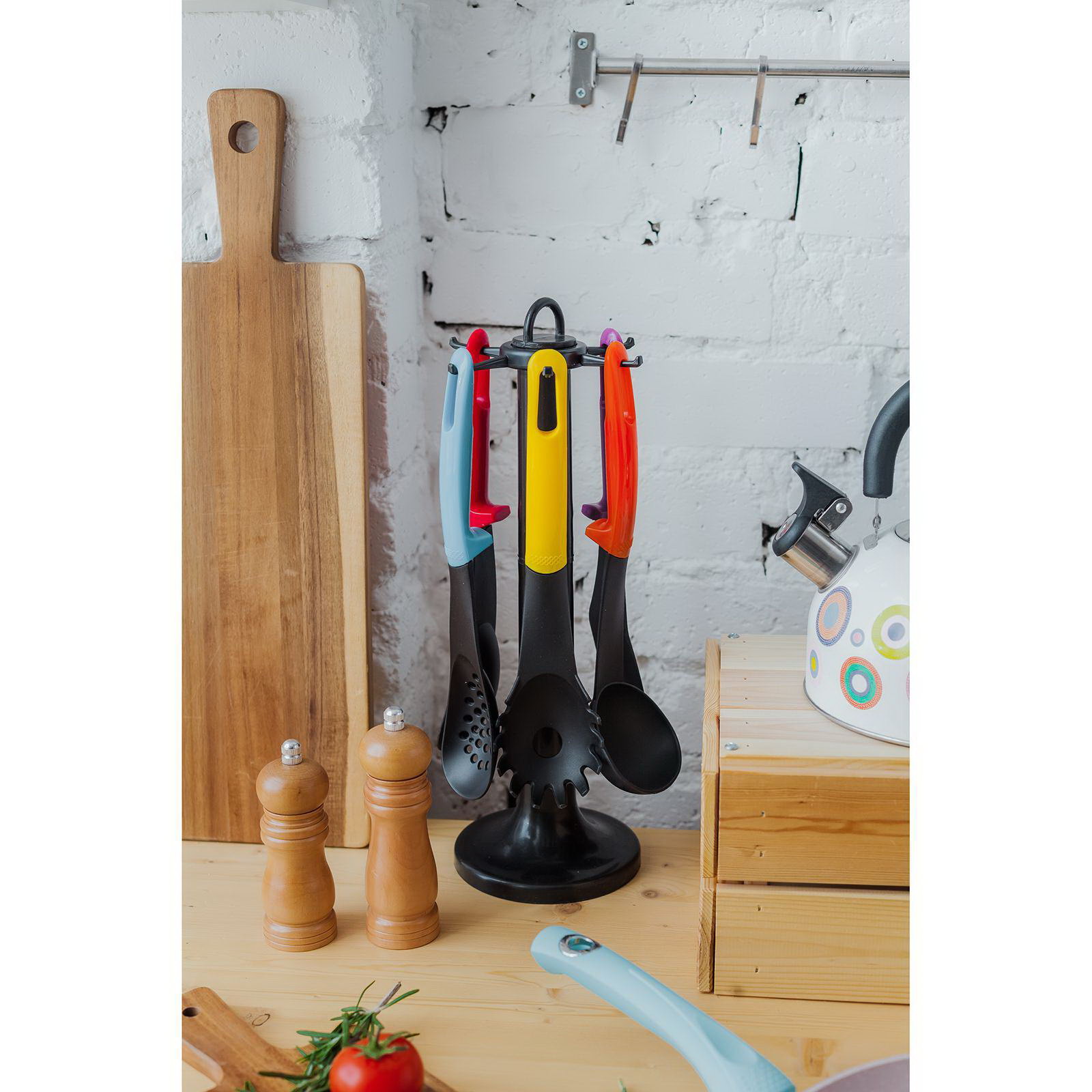 Набор кухонных принадлежностей "Монпансье", 6 предметов, на подставке, МИКС, 37x13x39 см., Доляна, Китай