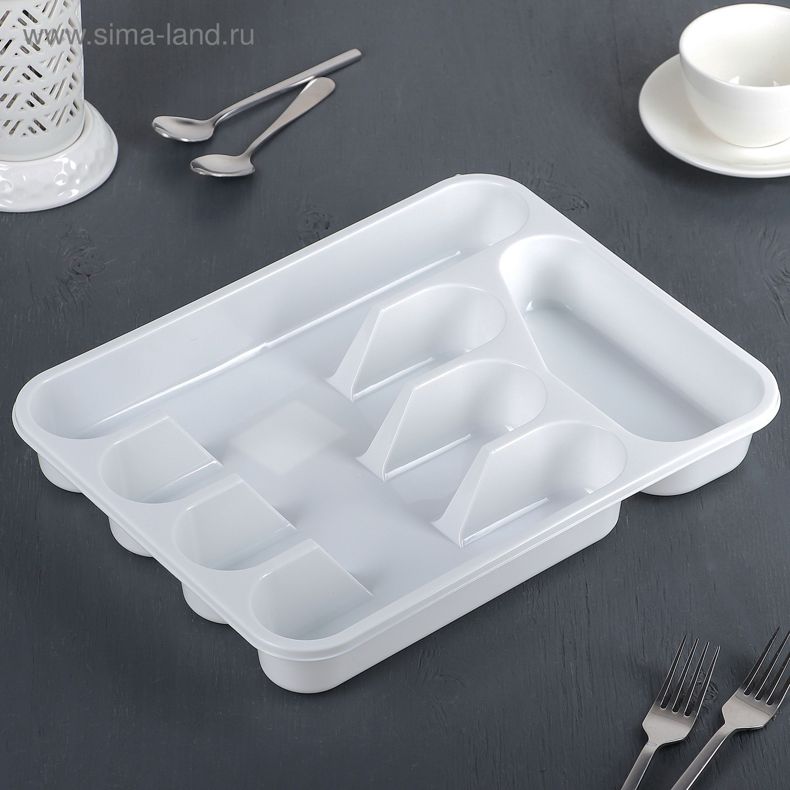 Лоток для столовых приборов 26x33.5x4.8 см, пластик, белый, 33.5x26x4.8 см., IDEA, Россия