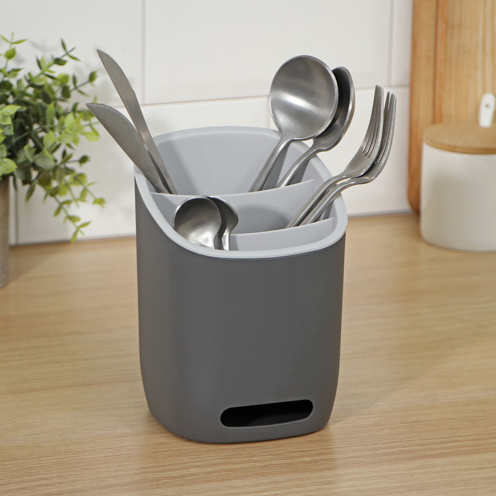 Подставка для столовых приборов "ИЗЛИ", 25x14.5x19 см, пластик, графитовая, IDEA, Россия
