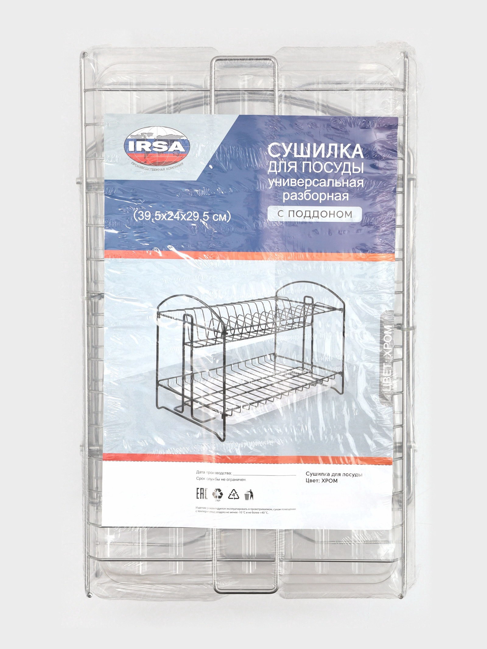 Сушилка для посуды универсальная, разборная, с поддоном, 39.5x24x29.5 см, хром, Россия