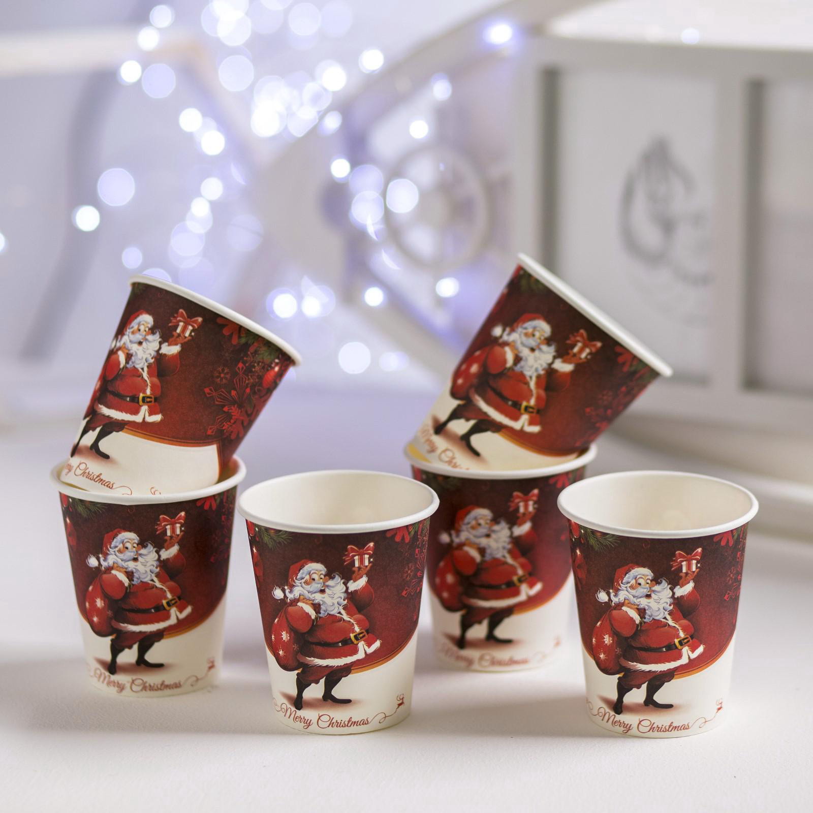 Стакан бумажный одноразовый "Дед Мороз с подарками", набор 6 шт., 7.5х7.5х11 см., Страна Карнавалия, Китай